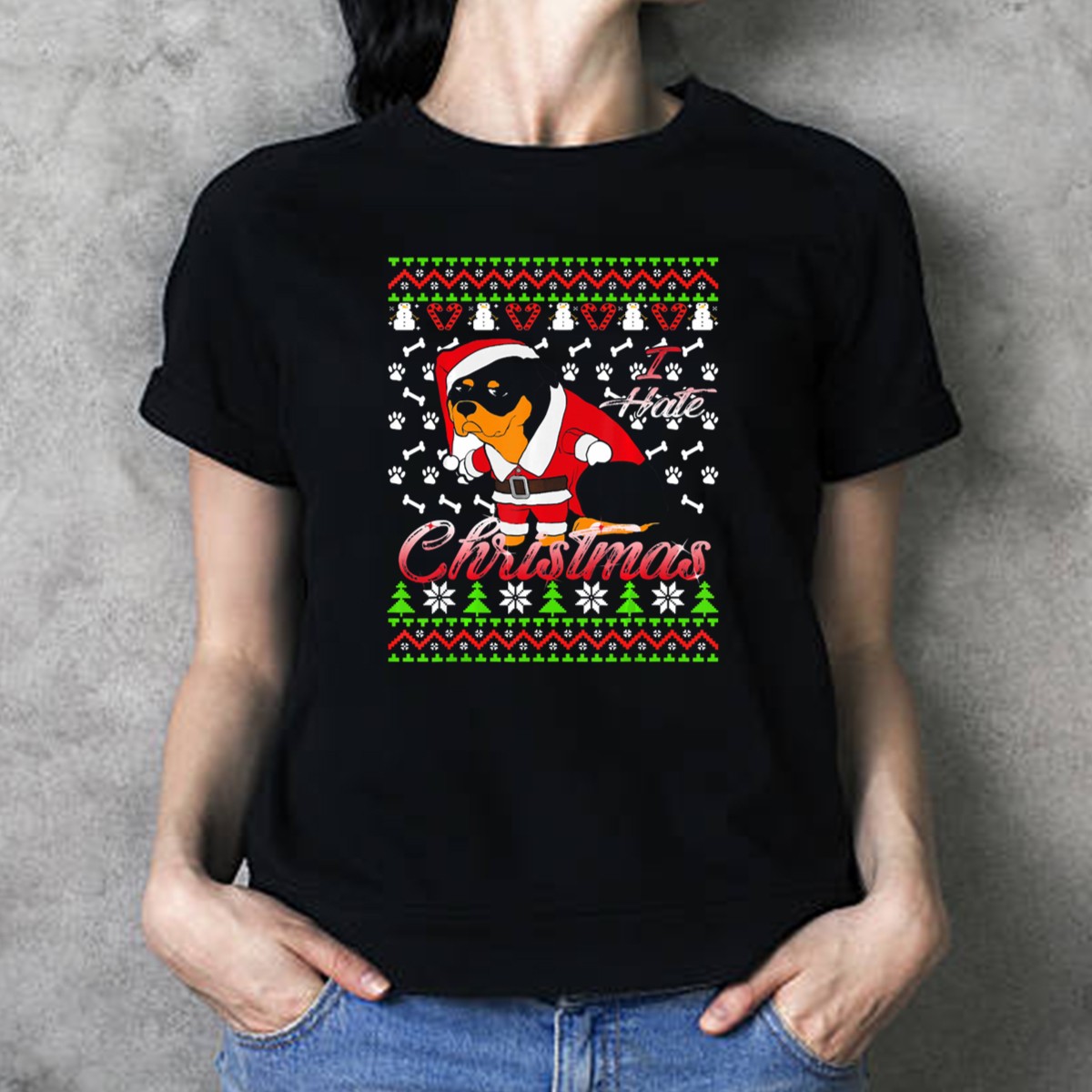 Celebrate the holiday season with a twist in our Rottweiler I Hate Christmas Santa Ugly T-Shirt! Perfect for dog lovers and those with a sense of humor, this fan-made design adds a playful touch to your casual wear. Whether you’re attending a themed event, hanging out with friends, or simply embracing your love for Rottweilers, this shirt is the ideal choice for spreading some unconventional holiday cheer. Printed in the USA, it combines comfort with a unique style that stands out.