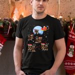 Rottweiler Reindeer Pulling Santa’S Sleigh Under Moonlight With Christmas Gifts T-Shirt