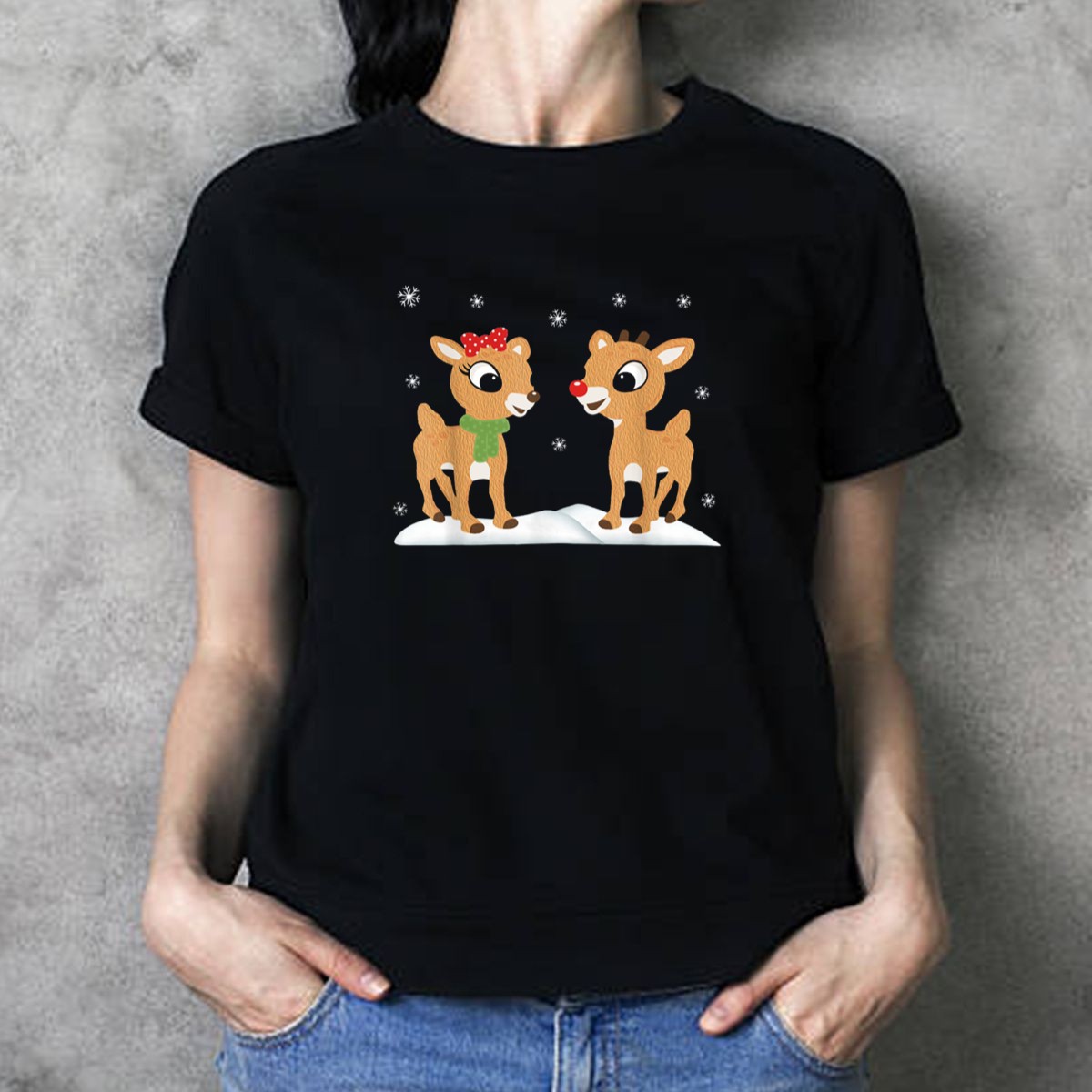 Be the first to review “Rudolph And Clarice Christmas Kids Girls Reindeer Snowflakes T Shirt”