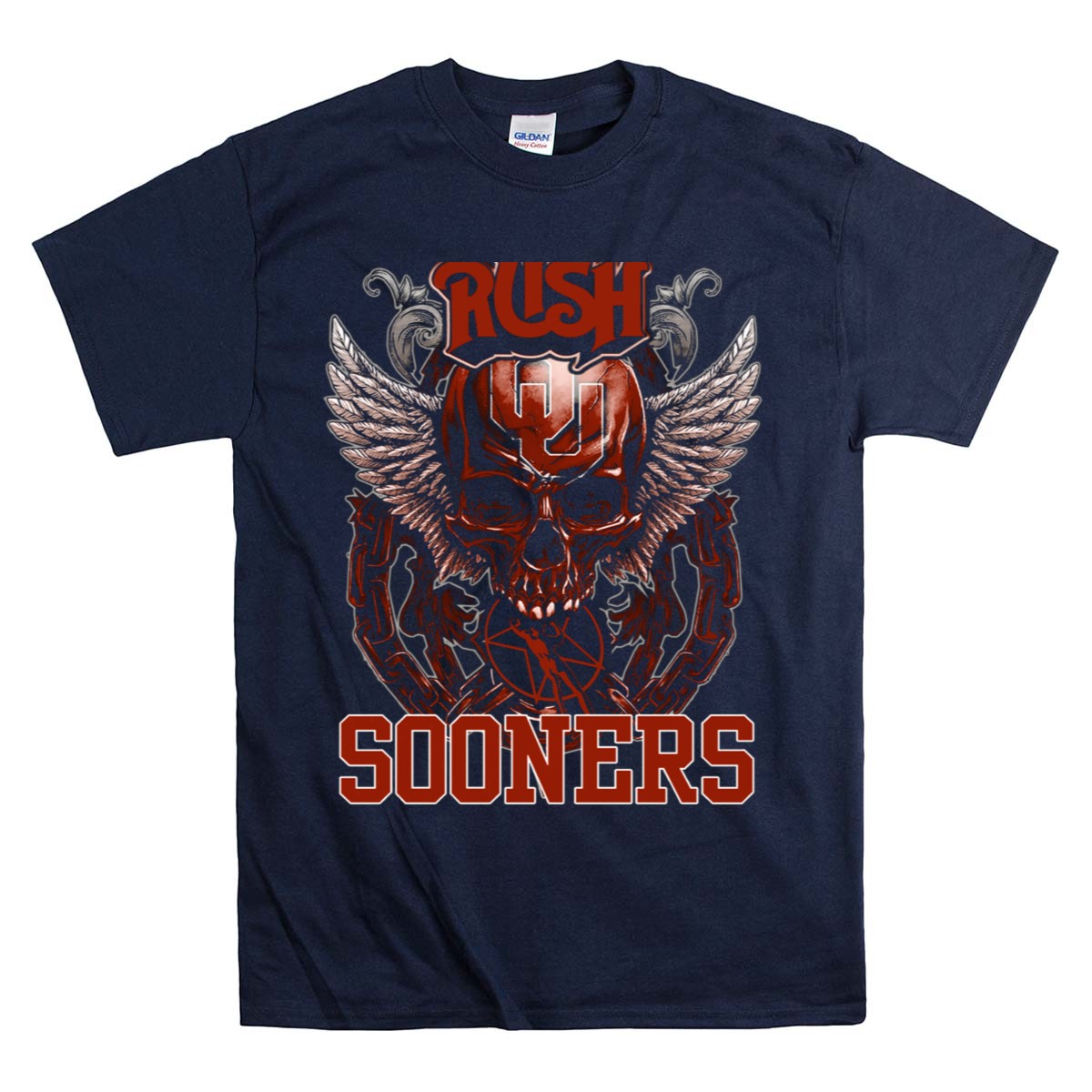 Show off your team spirit with the Rush Oklahoma Sooners Skull Wings T-Shirt! This fan-made design combines a bold skull and wings graphic, making it the perfect choice for die-hard Sooners fans. Whether you’re heading to a game, a themed event, or just enjoying daily wear, this shirt is designed for comfort and style. Proudly printed in the USA, it’s a must-have addition to your casual wardrobe.