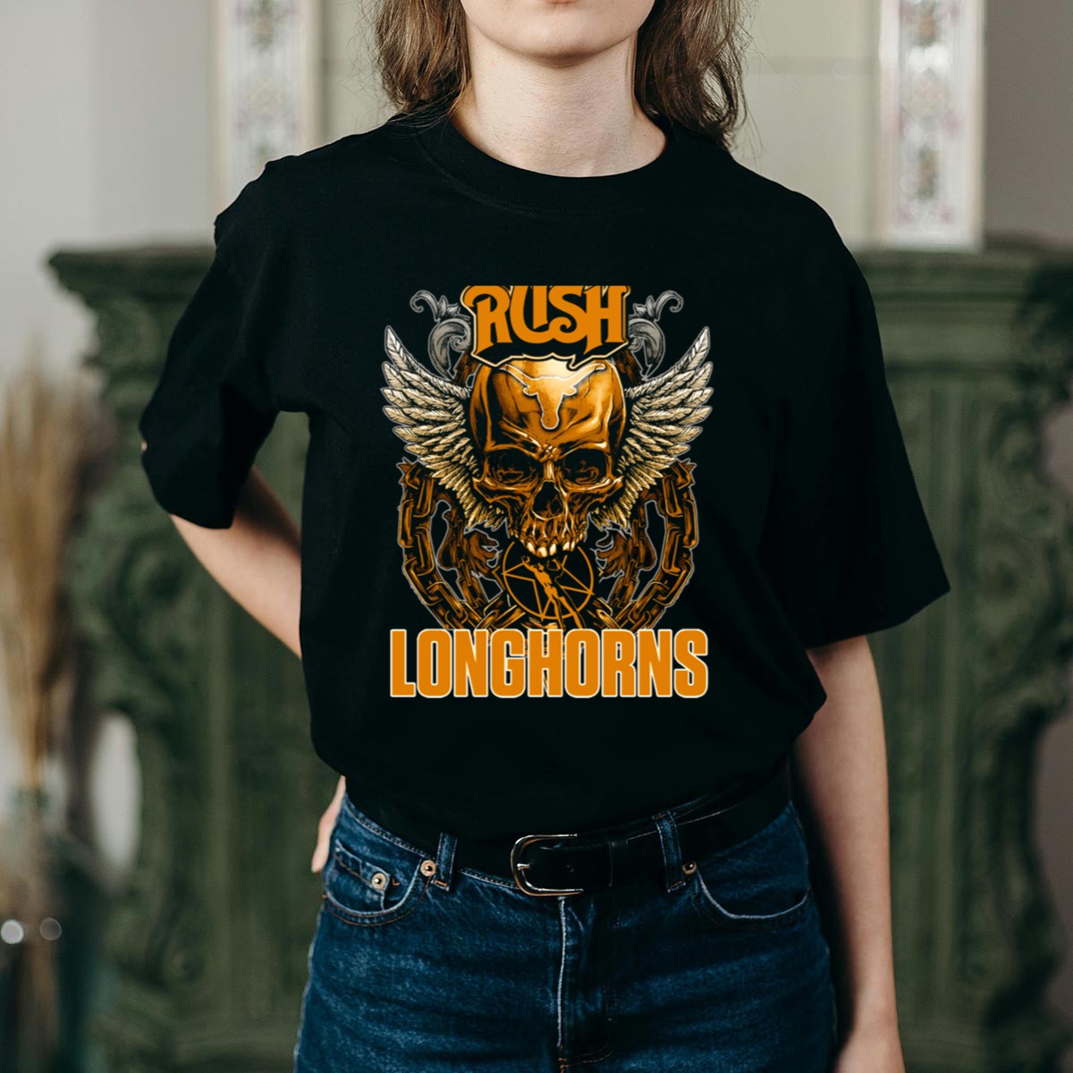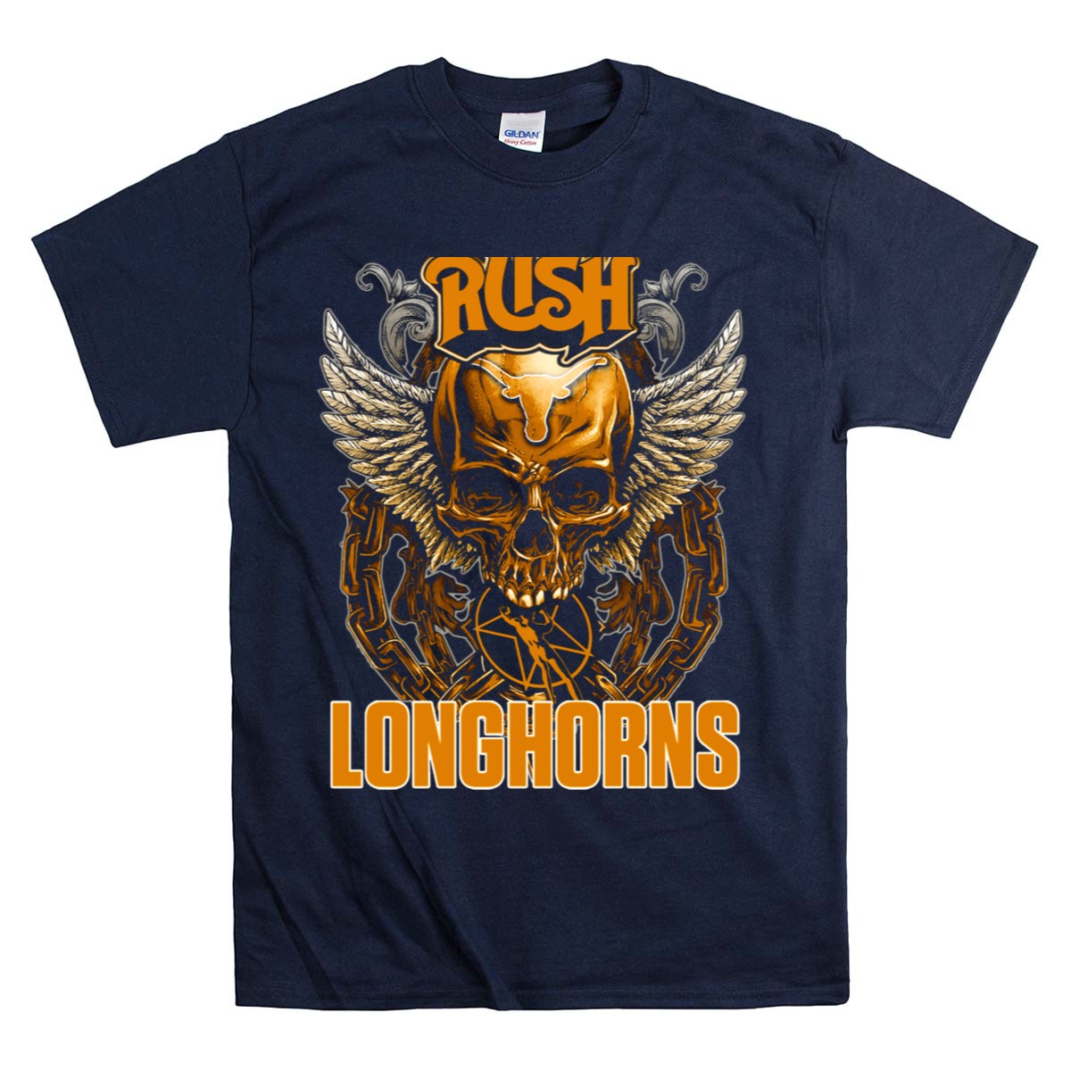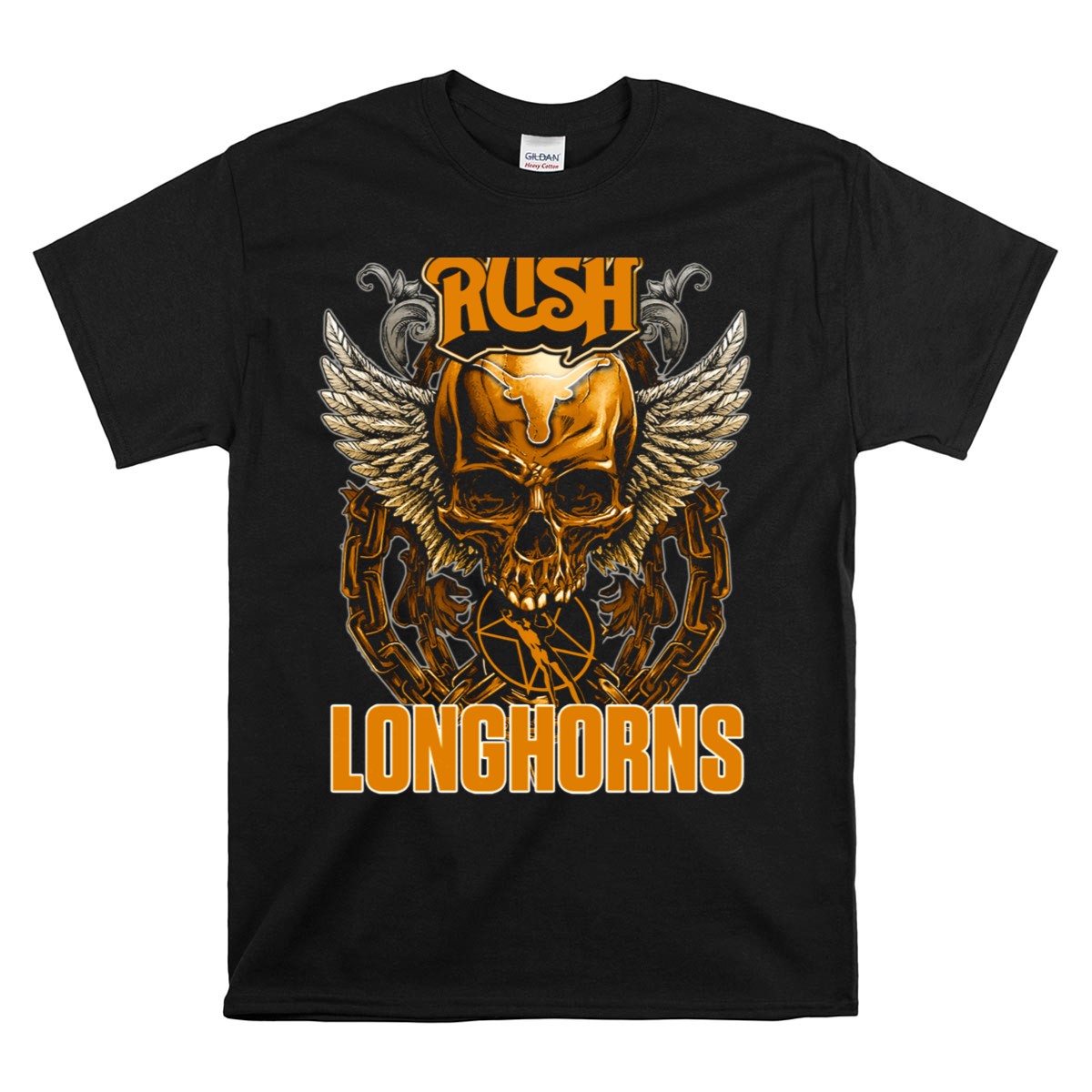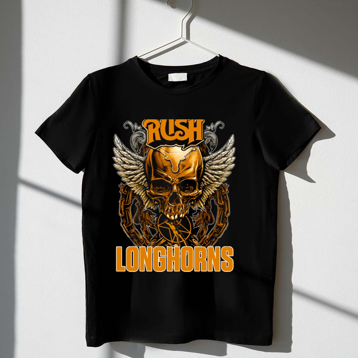 Show off your Texas pride with the Rush Texas Longhorns Skull Wings Chains T-Shirt, designed for true fans who appreciate bold graphics and a comfortable fit. Whether you’re at a game, tailgating with friends, or just relaxing at home, this shirt delivers a striking look that’s perfect for any casual occasion. With its fan-made design printed in the USA, you’ll stand out while supporting your team in style.
