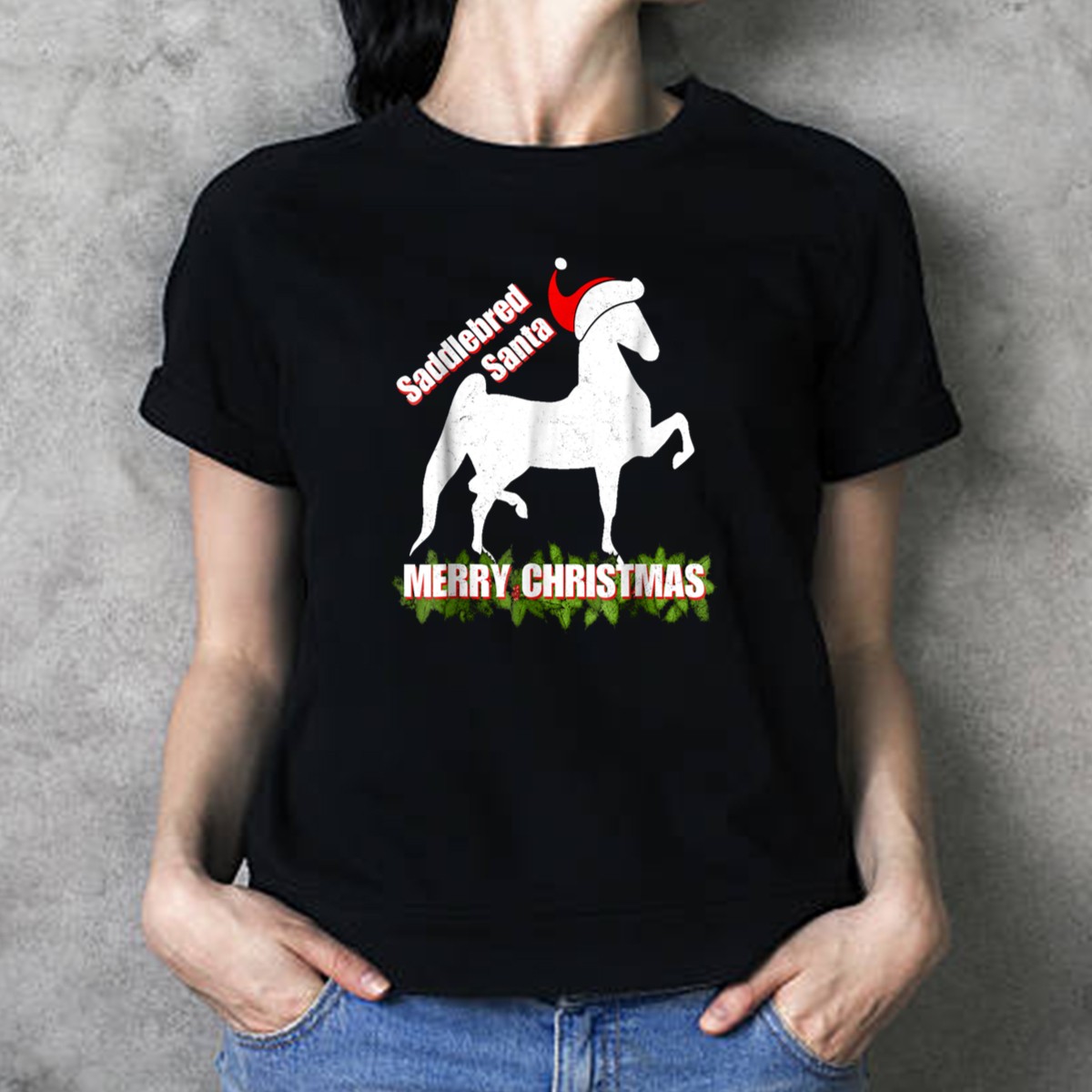 Celebrate the joy of the holiday season with our Saddlebred Santa Merry Christmas T-Shirt, perfect for horse lovers and enthusiasts alike! Featuring a unique fan-made design that showcases the beloved American Saddlebred horse, this shirt is ideal for casual wear, themed events, or simply expressing your passion for equestrian life. Made with comfort in mind, this classic fit tee is a must-have for anyone who wants to spread Christmas cheer while showcasing their love for horses.