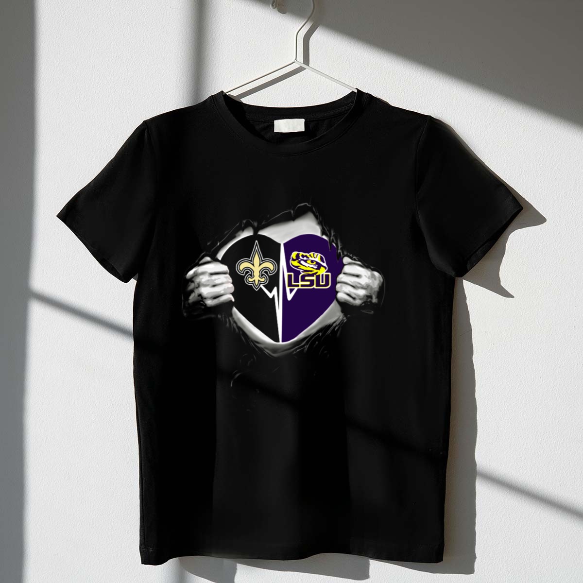 Show your passion for the Saints and LSU Tigers with this unique heart design T-shirt, perfect for true fans who want to showcase their team spirit. Made for those who love to celebrate their teams during casual outings, themed events, or just daily wear, this shirt is not just a piece of clothing; it’s a statement of loyalty and pride. Crafted with care in the USA, this fan-made design is a must-have for any sports enthusiast looking to combine comfort and style.