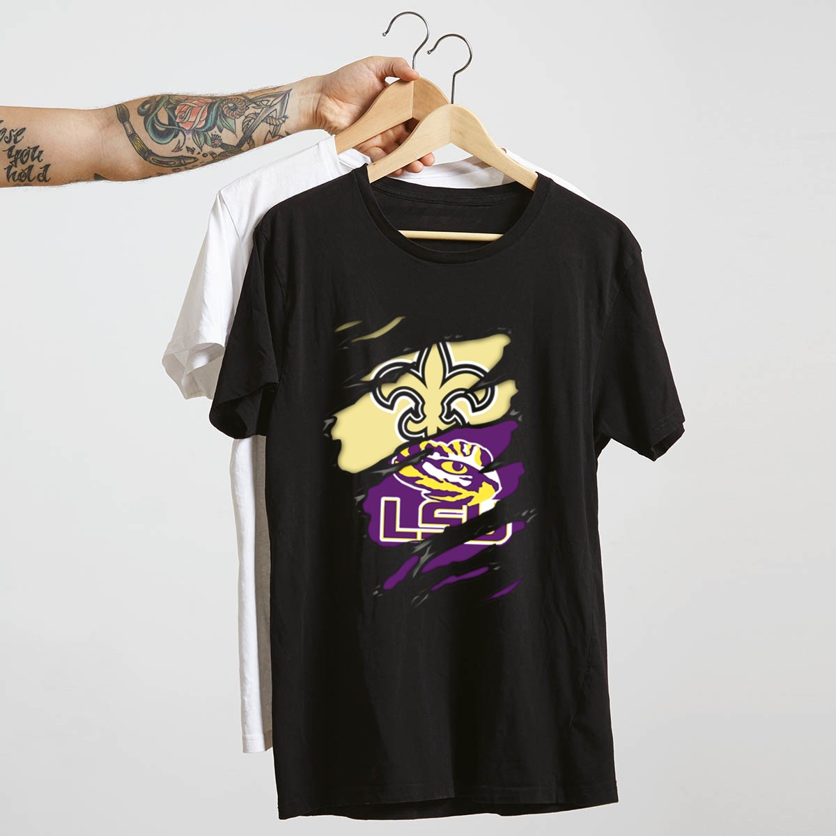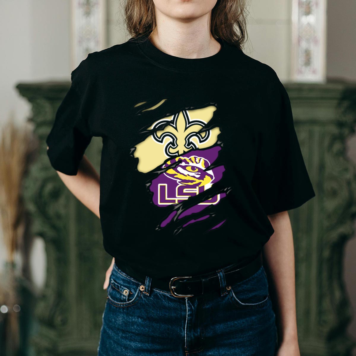 Show your team spirit with our Saints Fleur de Lis and LSU Tigers Logo Fusion T-Shirt! Perfect for passionate fans, this shirt beautifully combines the iconic symbols of New Orleans and LSU, making it an ideal choice for casual outings, game days, or themed events. Crafted for comfort and style, this unique fan-made design is printed in the USA, ensuring you stand out while supporting your favorite teams.