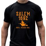 Embrace the spooky spirit of Halloween with our Salem 1692 Oops Missed One Witch T-Shirt! Perfect for anyone who loves all things witchy and whimsical, this fan-made design is a playful nod to the infamous witch trials of Salem. Ideal for casual outings, themed events, or simply lounging around, this shirt combines comfort with a unique twist that’ll surely spark conversations. Printed in the USA, it’s a must-have addition to your Halloween wardrobe!