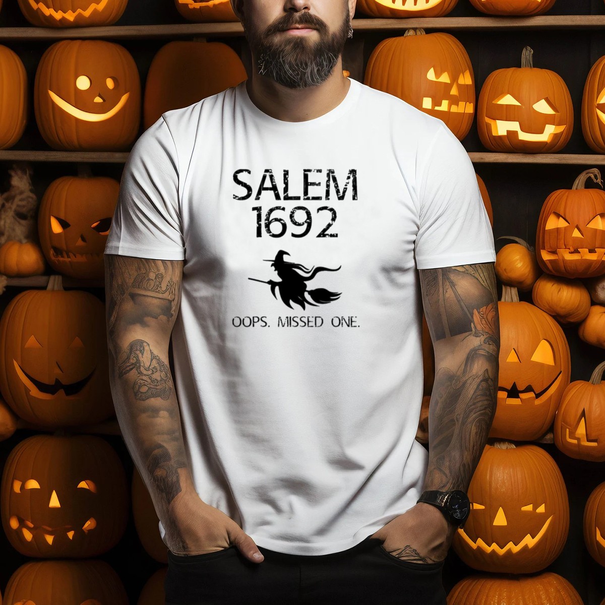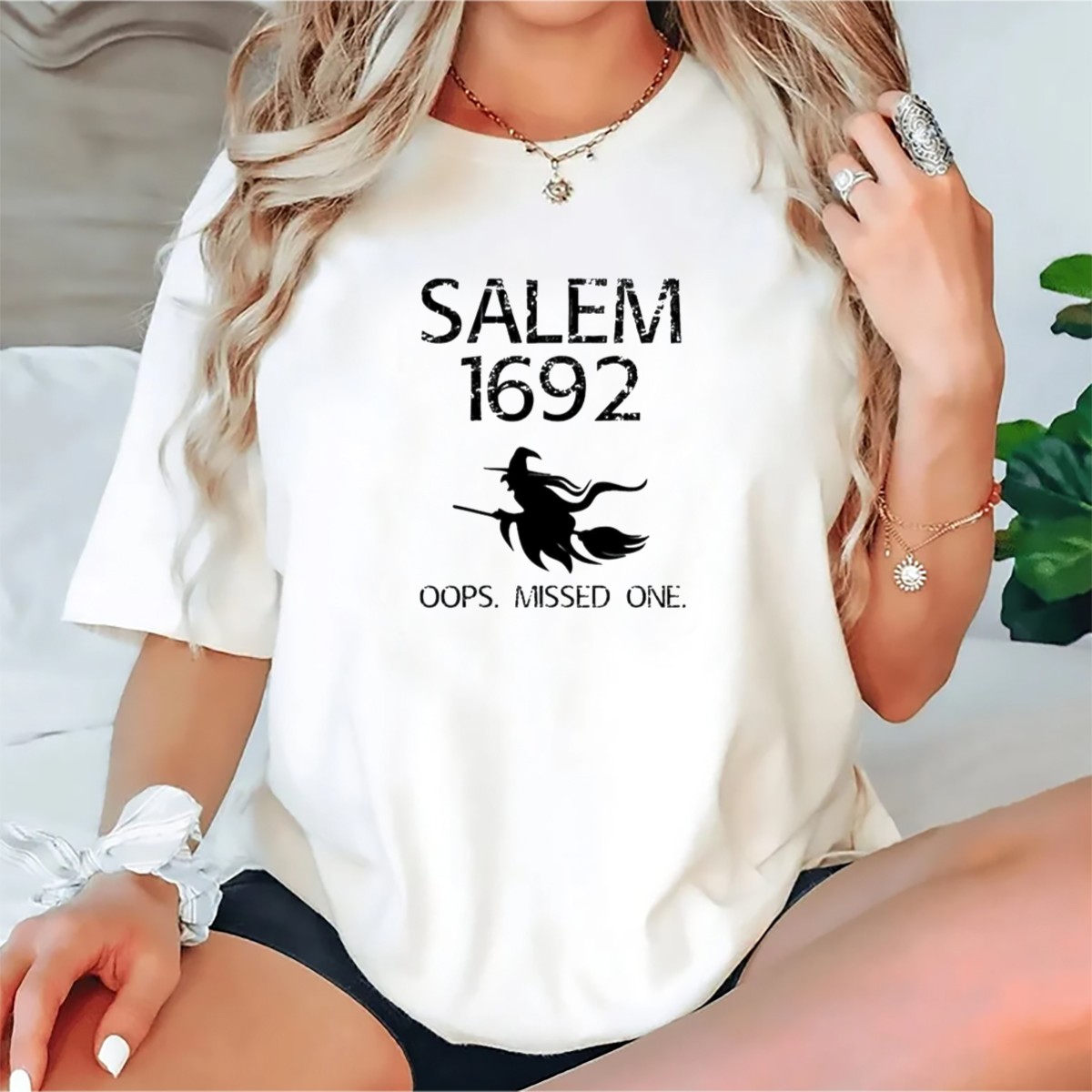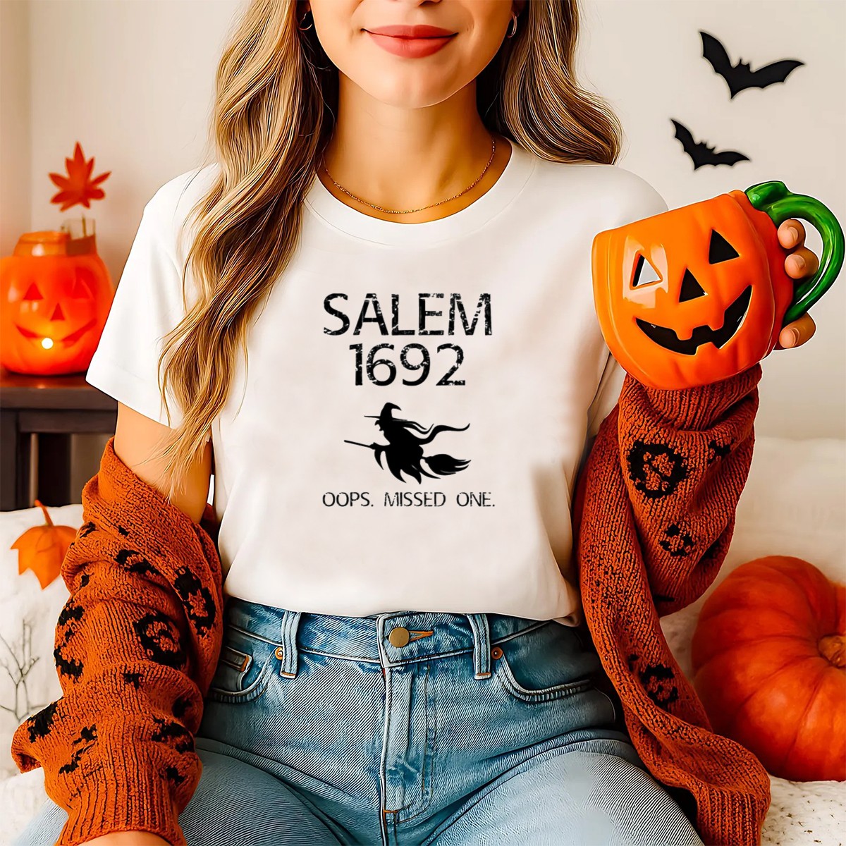Celebrate the spirit of Halloween with our Salem 1692 Oops Missed One Witch T-Shirt, a perfect blend of comfort and style for those who love a touch of whimsy. Designed for fans of spooky tales and historical lore, this shirt is ideal for casual outings, themed events, or simply showcasing your love for all things witchy. Made in the USA, this fan-made design adds a unique flair to your wardrobe, making it a must-have for the season.