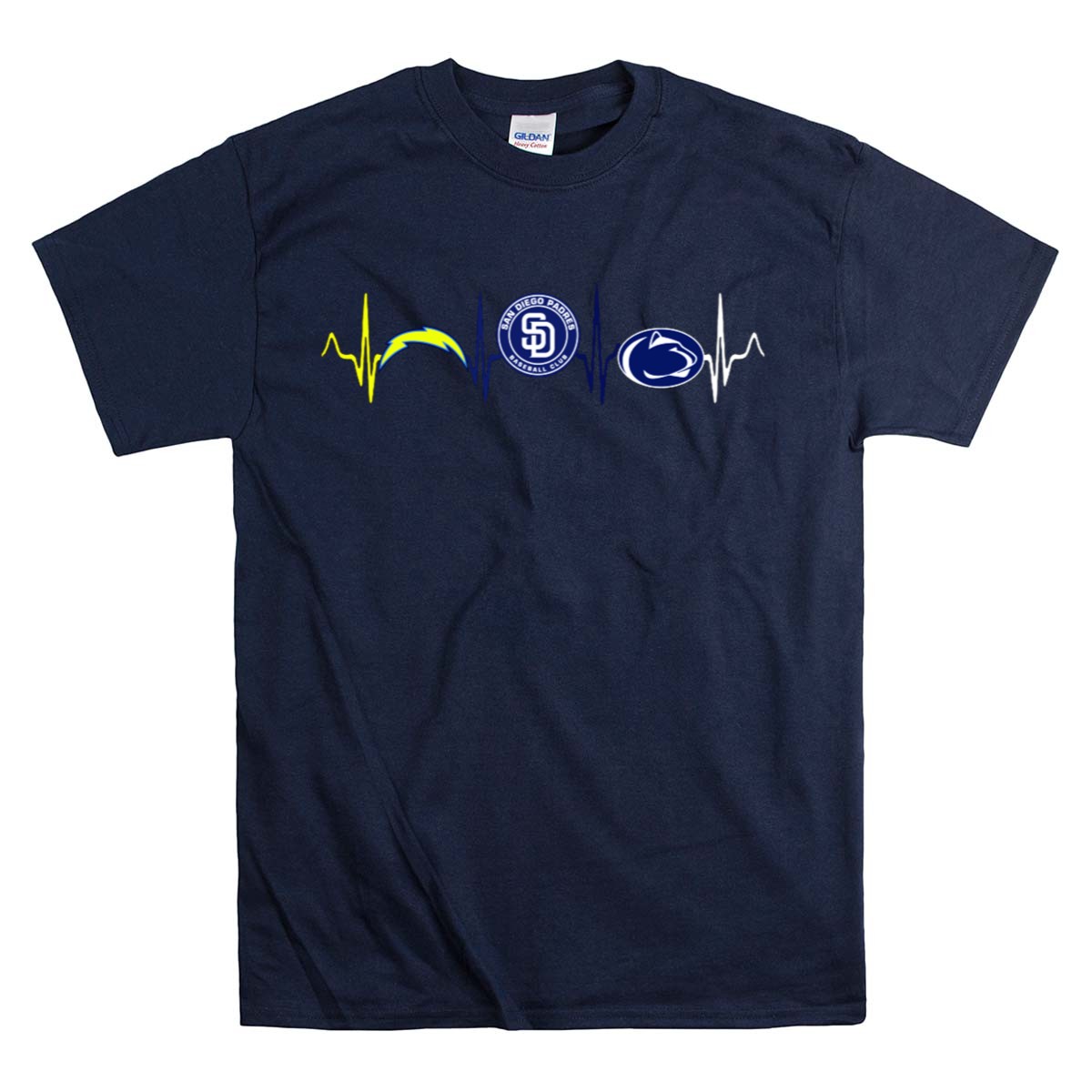 Show off your team spirit with our San Diego Chargers Padres Penn State Nittany Lions Heartbeat T-Shirt! This fan-made graphic tee is perfect for dedicated supporters who want to showcase their love for multiple teams in a stylish and comfortable way. Ideal for casual outings, themed events, or everyday wear, this shirt combines a classic fit with a unique design, making it a must-have for any sports enthusiast. Proudly printed in the USA, it’s a versatile addition to your wardrobe that celebrates your passion for sports.