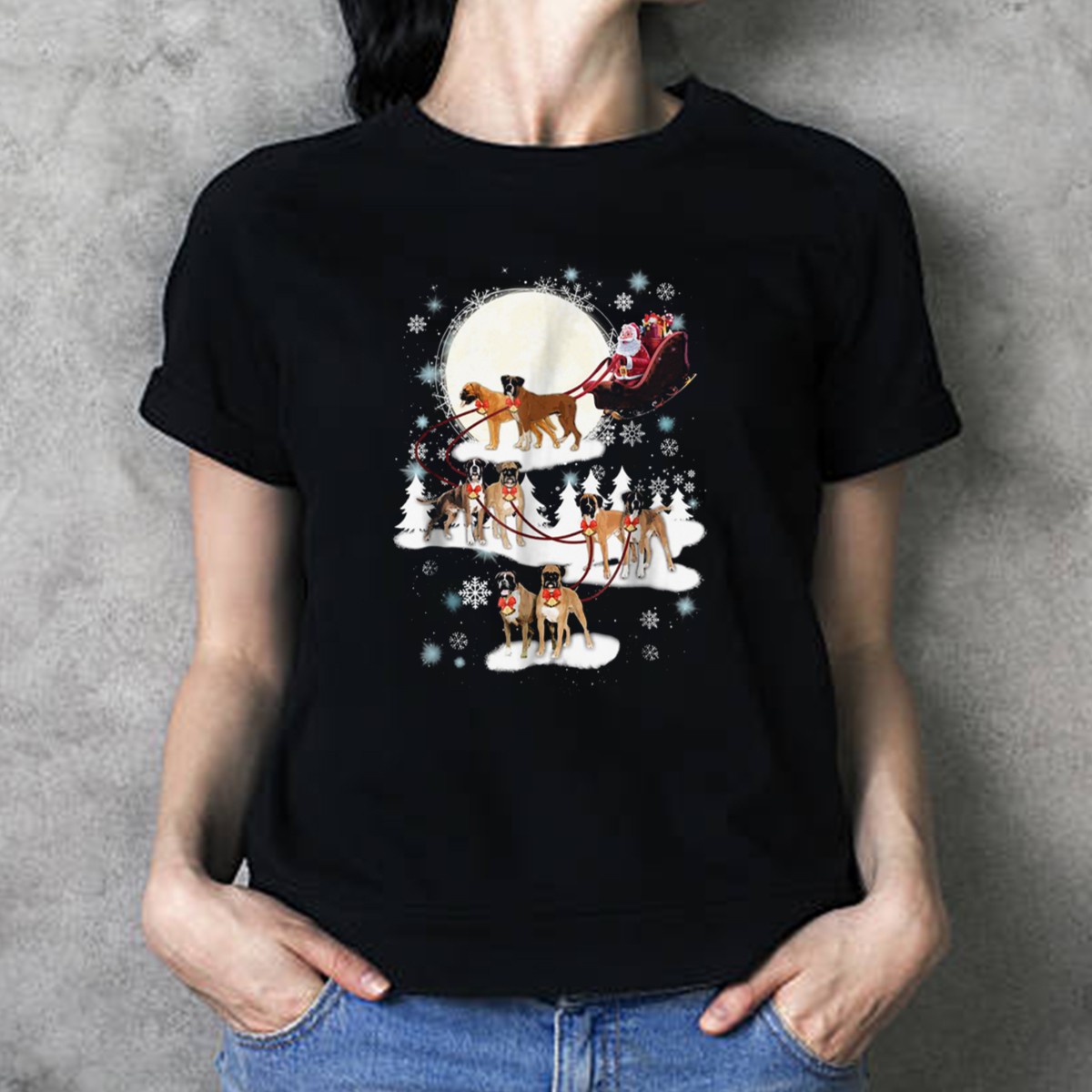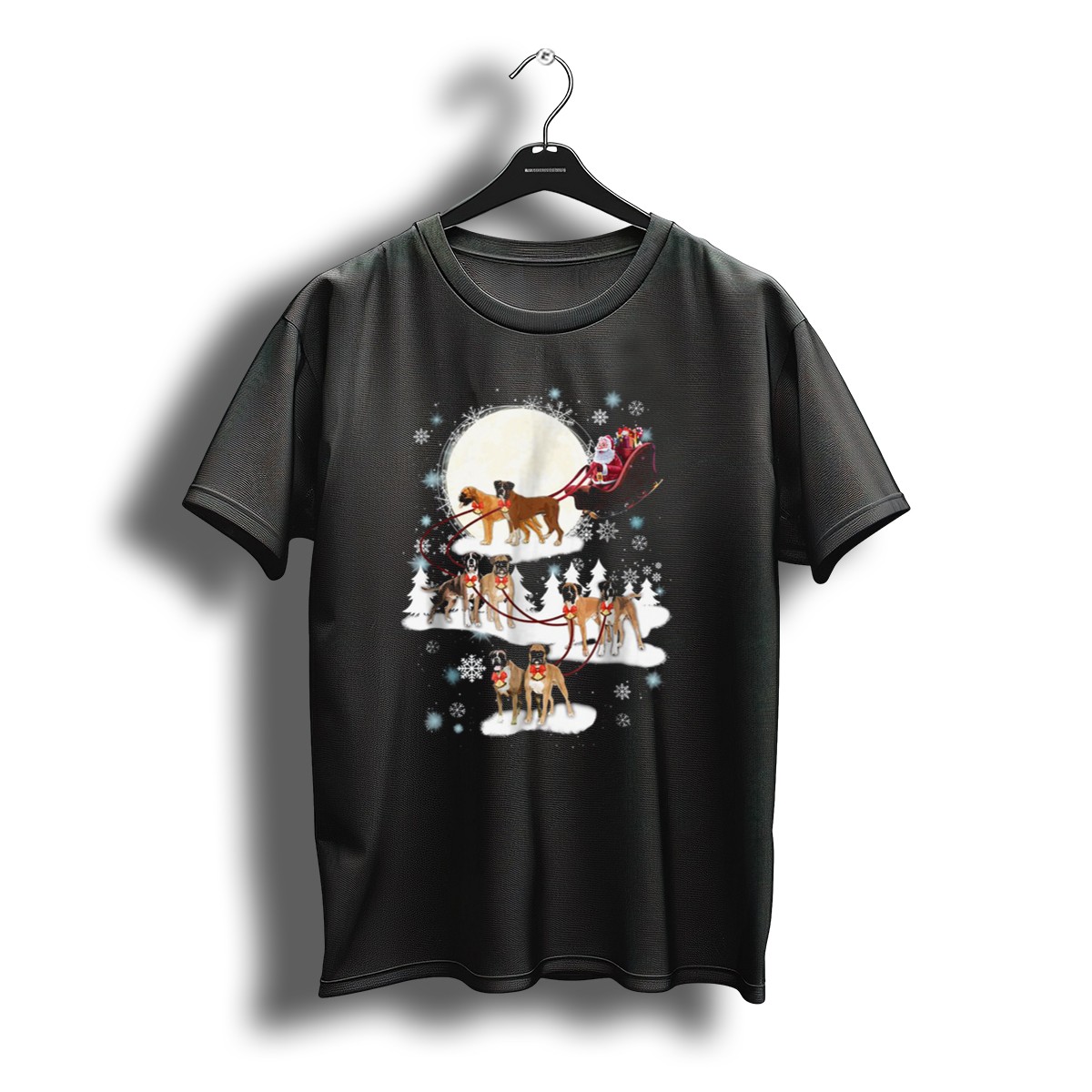 Embrace the festive spirit with our Santa and Boxer Dogs Pulling Reindeer Sleigh Christmas Moon Snowflakes T-Shirt! Perfect for dog lovers and holiday enthusiasts alike, this whimsical design captures the joy of the season and makes for a fun addition to your casual wear. Whether you’re attending a themed event, gathering with friends, or simply spreading cheer during the holidays, this shirt is a delightful choice that showcases your love for Christmas and furry companions. Made with care in the USA, it’s a unique piece that stands out in any holiday wardrobe.