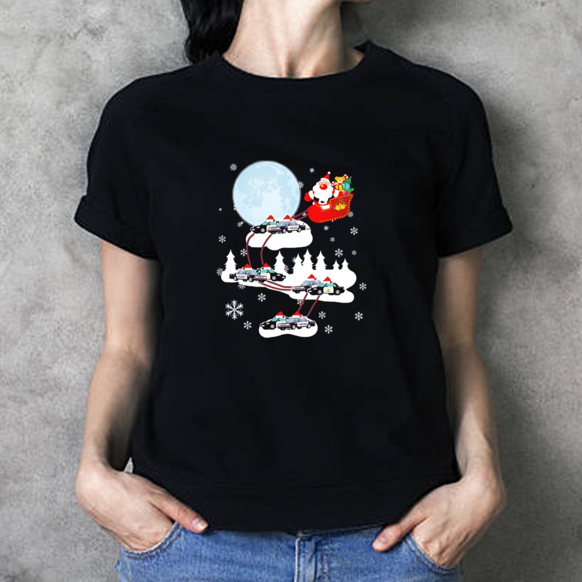 Get ready to spread some holiday cheer with our Santa and Reindeer in Christmas Police Car Sleigh Ride T-Shirt! Perfect for festive gatherings, themed events, or just casual wear during the holiday season, this fan-made design is ideal for anyone looking to showcase their love for Christmas in a fun and playful way. Crafted for comfort and style, this shirt is printed in the USA and is sure to bring smiles wherever you go!