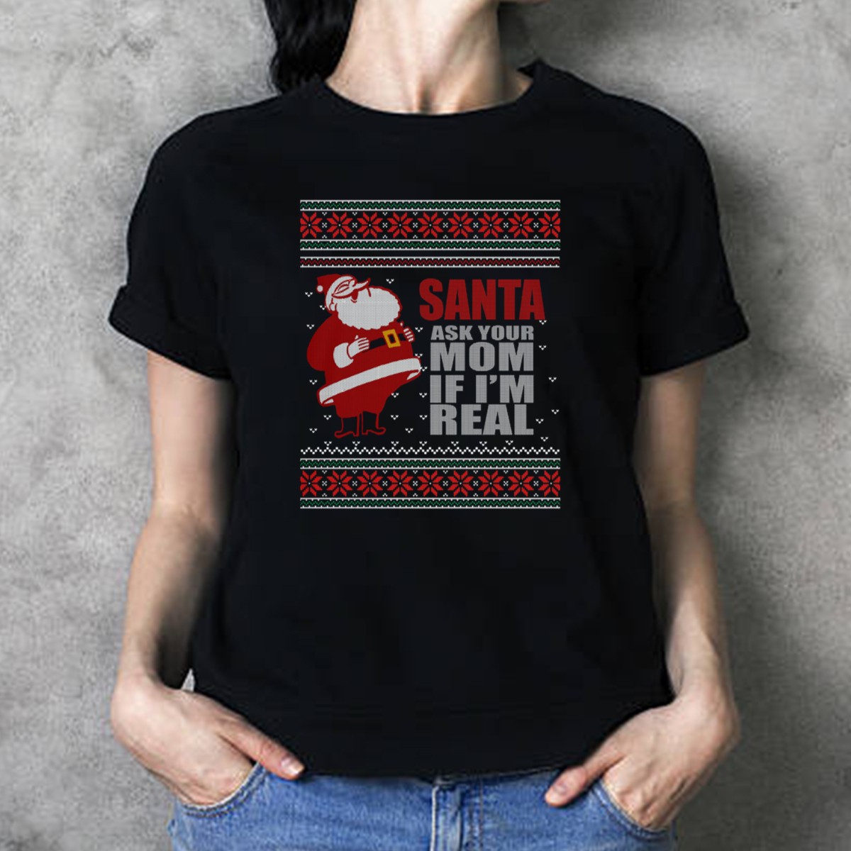 Get ready to spread some holiday cheer with our “Santa Ask Your Mom If I’m Real” Ugly Christmas T-Shirt! Perfect for those who love to embrace the festive spirit with a humorous twist, this shirt is ideal for casual wear, themed events, or just adding a touch of fun to your daily outfits. Made for everyone with a playful sense of humor, this fan-made design is printed in the USA, ensuring quality and uniqueness in every wear.