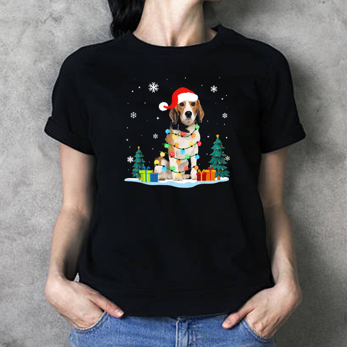 Be the first to review “Santa Beagle Wrapped In Christmas Lights With Gifts And Trees T Shirt”