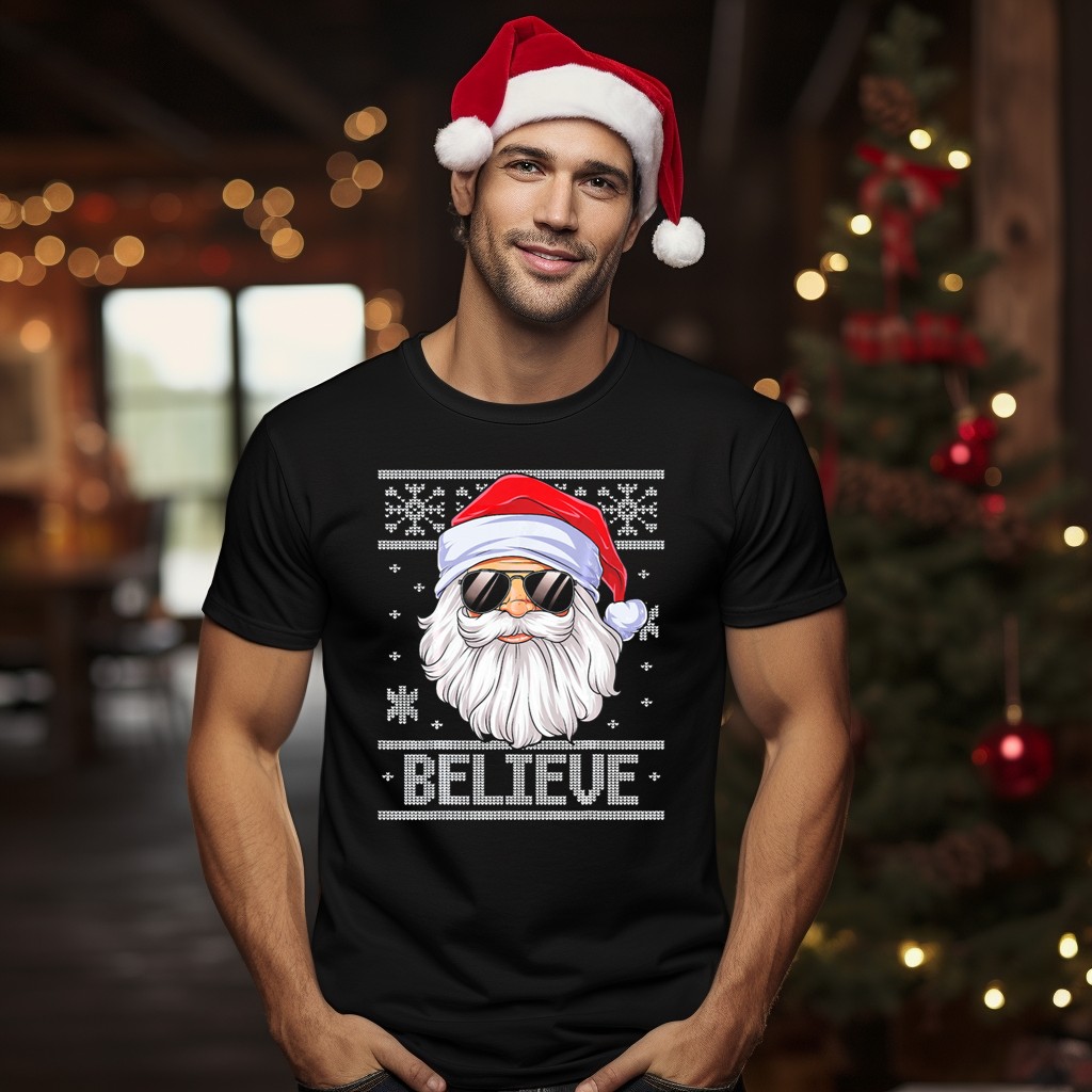 Get into the holiday spirit with our Santa Believe Christmas T-Shirt! Perfect for those who love to celebrate the festive season with a fun twist, this shirt features a playful design of Santa rocking sunglasses and surrounded by whimsical snowflakes. Ideal for casual wear, themed events, or just spreading some cheer during your daily routine, this fan-made masterpiece is printed in the USA, ensuring quality and a unique touch to your holiday wardrobe.