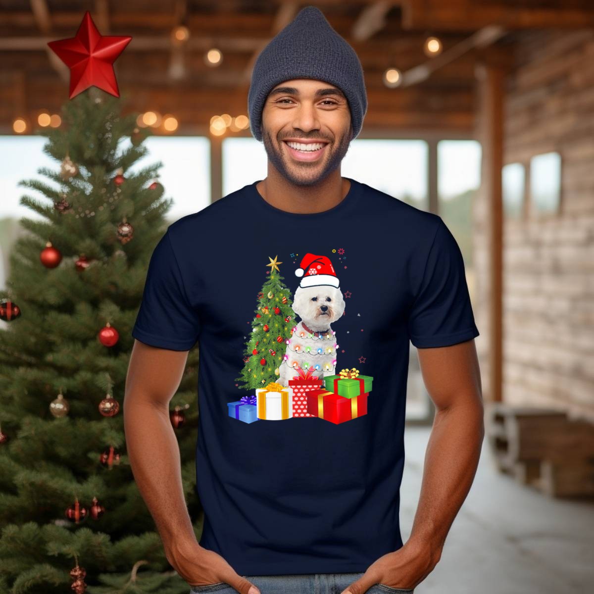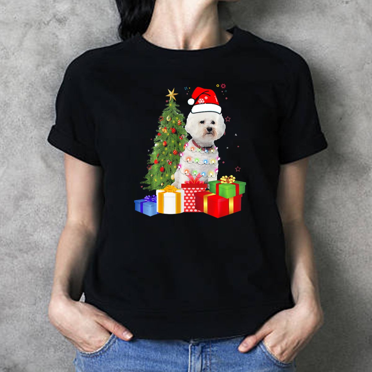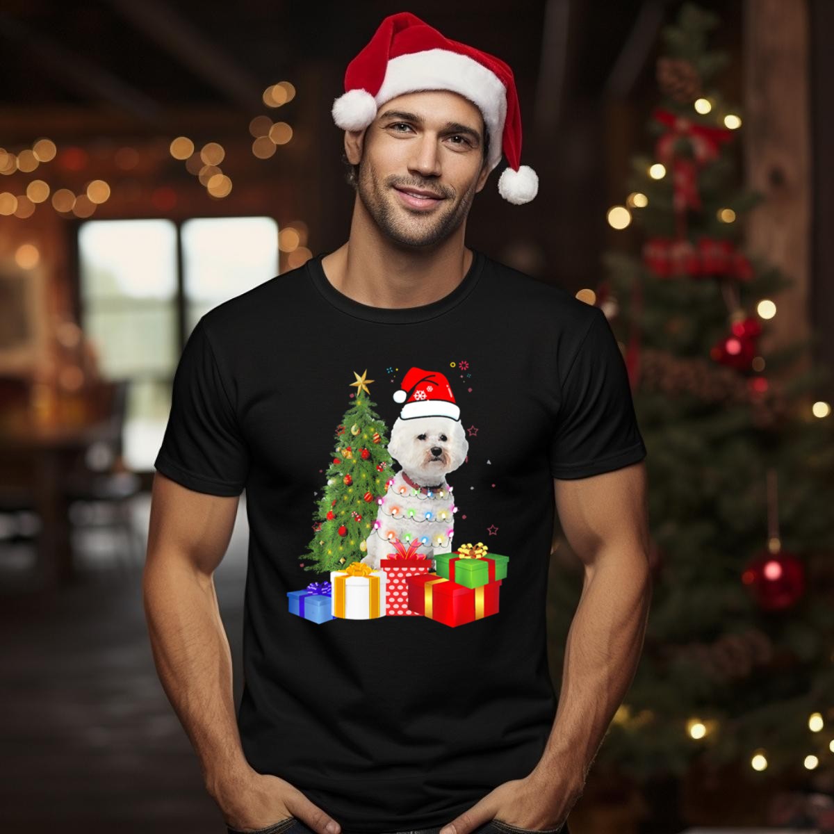 Celebrate the holiday spirit with our Santa Bichon Frise Christmas Tree T-Shirt! Perfect for dog lovers and festive enthusiasts alike, this delightful tee features an adorable graphic of a Bichon Frise dressed as Santa, surrounded by a beautifully decorated Christmas tree. Ideal for casual wear, themed events, or simply spreading cheer during the holiday season, this shirt is a must-have addition to your festive wardrobe. Made with love and printed in the USA, it showcases a unique fan-made design that adds a touch of whimsy to any outfit.