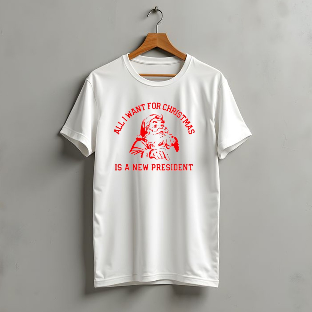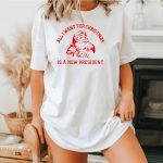 Celebrate the festive season with a touch of humor in our “Santa Claus All I Want For Christmas Is A New President” T-shirt! Perfect for those who love to combine holiday spirit with a bit of political fun, this shirt is ideal for casual gatherings, themed events, or just everyday wear during the holidays. Made with care in the USA, this fan-made design is sure to spark conversation and laughter wherever you go, making it a unique addition to your wardrobe.