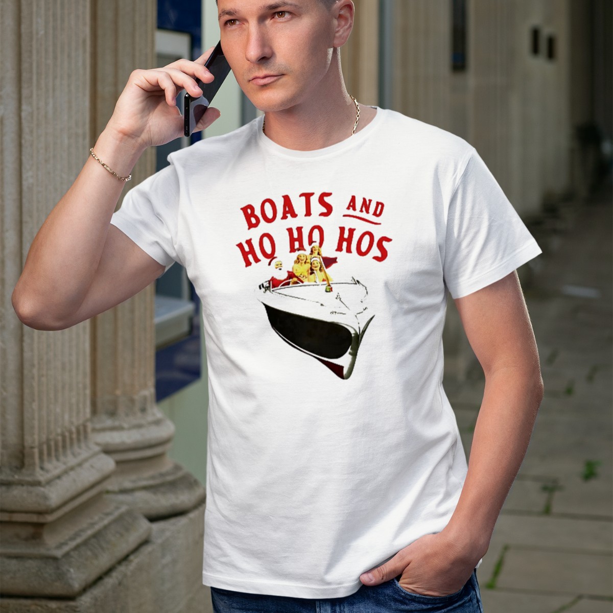 Celebrate the festive spirit with our Santa Claus Boats And Ho Ho Hos Christmas Boat Party Holiday Fun T-Shirt! Perfect for anyone who loves to spread joy during the holiday season, this shirt is a fun addition to your casual wear collection. Whether you’re attending a themed event, gathering with friends, or simply enjoying daily wear, this fan-made design printed in the USA adds a cheerful touch to your outfit.