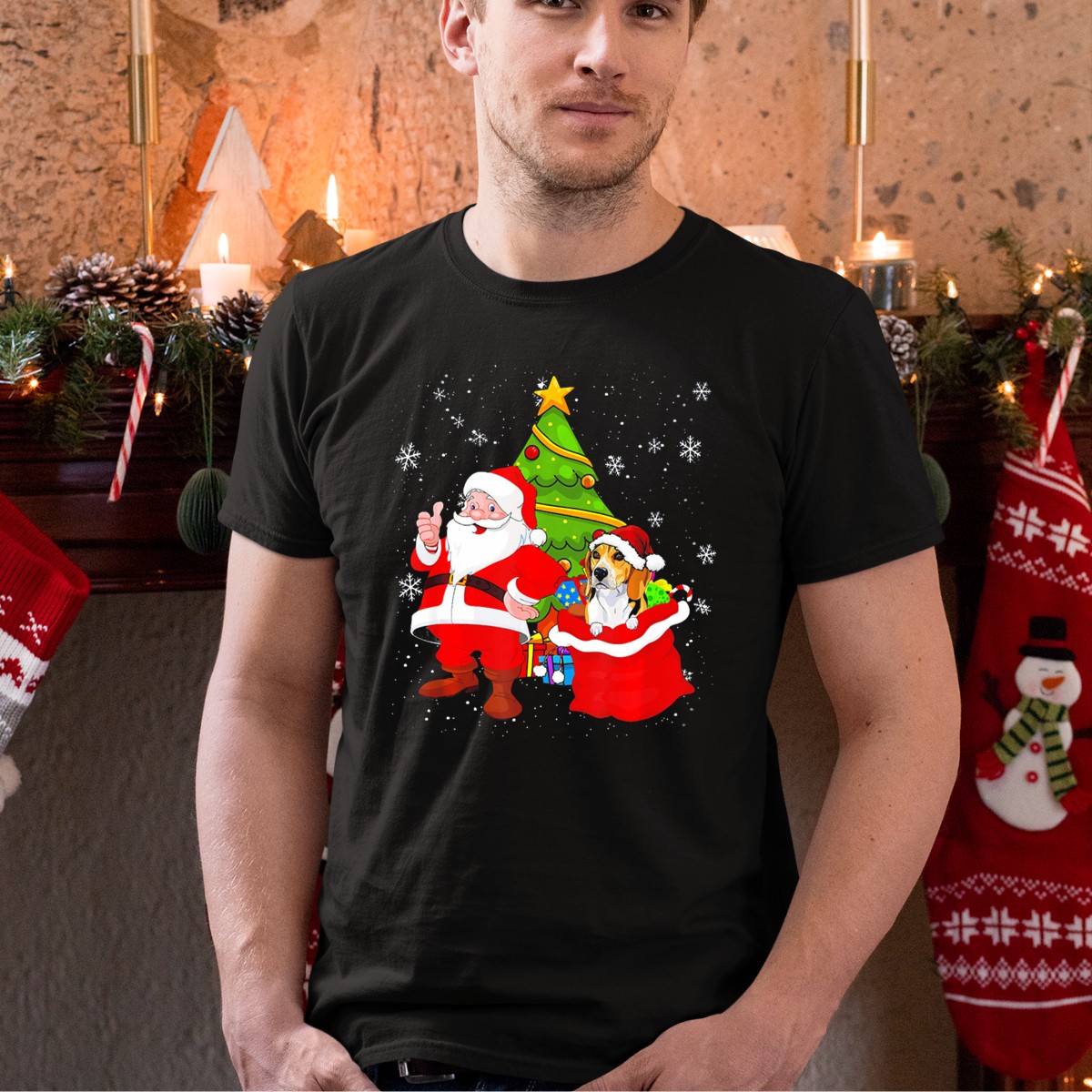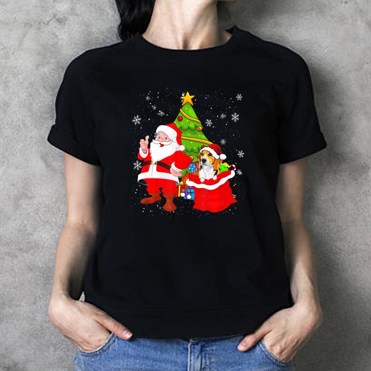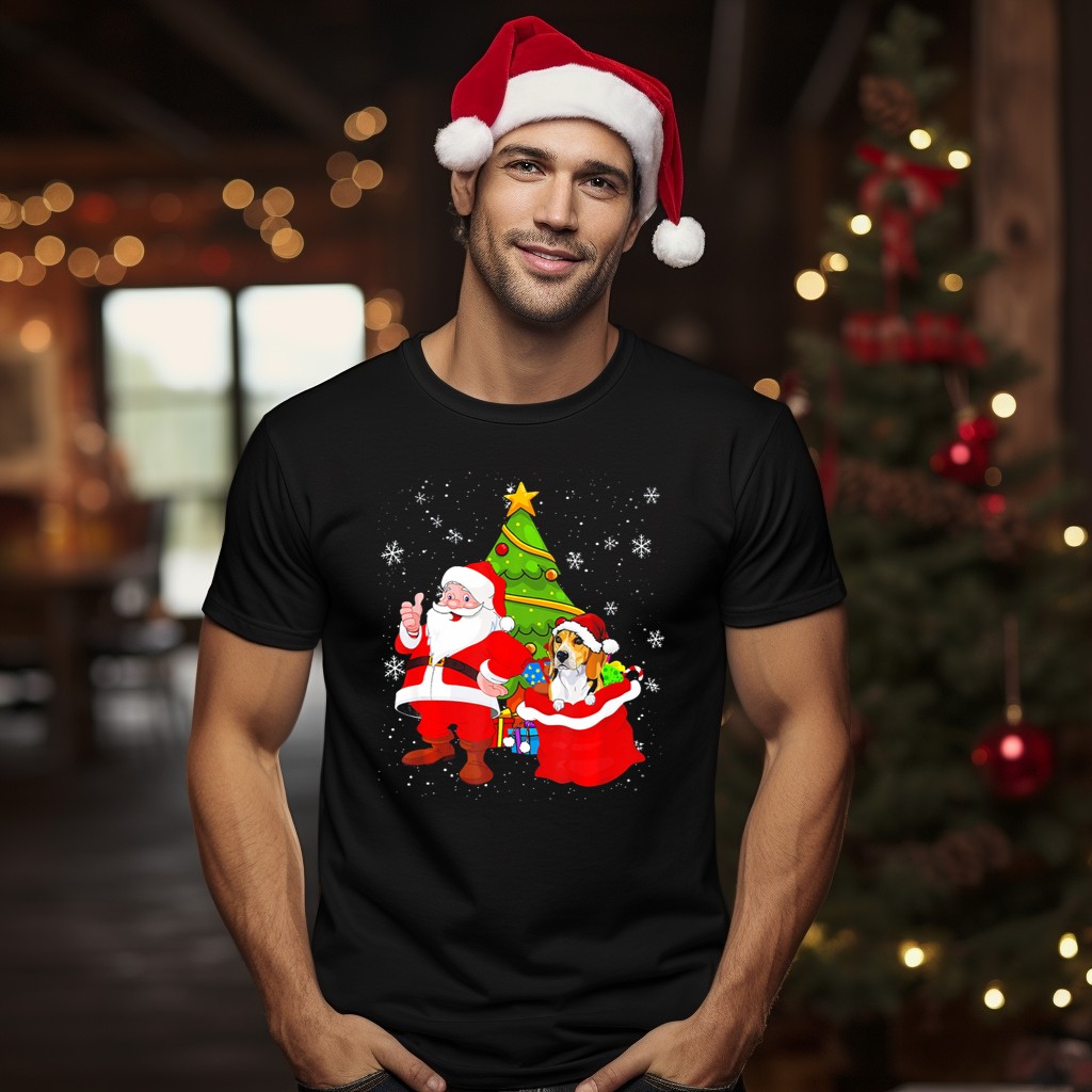Celebrate the holiday season with our Santa Claus Christmas Beagle T-Shirt, featuring an adorable design that perfectly captures the festive spirit! This shirt is ideal for dog lovers and holiday enthusiasts alike, making it a great choice for casual wear, themed events, or daily outings during the winter months. Crafted with care in the USA, the unique fan-made design showcases a charming beagle with a festive tree and snowflakes, bringing joy and warmth to your holiday wardrobe.