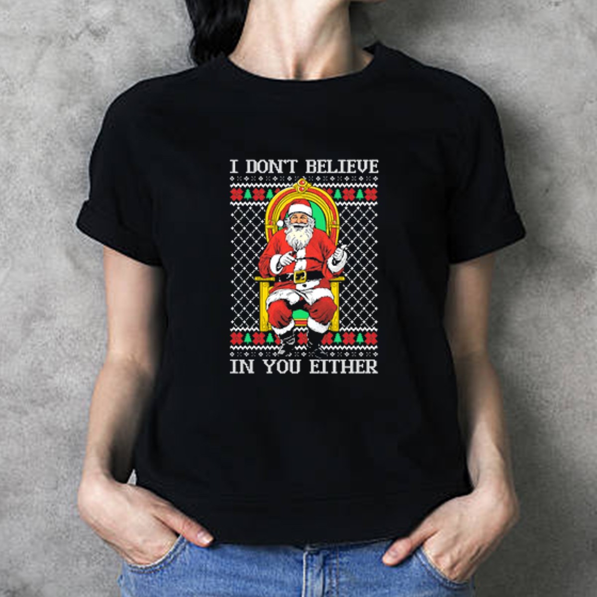 Celebrate the holiday season with a touch of humor in our Santa Claus “I Don’t Believe In You Either” T-shirt! Perfect for those who love to embrace the lighter side of Christmas, this tee is great for casual wear, themed events, or simply lounging around during the festive season. Its unique fan-made design, printed right here in the USA, adds a fun twist to your holiday wardrobe, making it a must-have for anyone who enjoys spreading laughter and cheer.