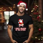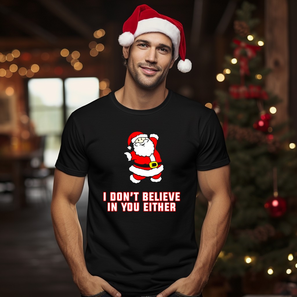 Get ready to spread some holiday cheer with our Santa Claus I Don’t Believe In You Either Christmas Humor T-Shirt! Perfect for those who love to add a touch of humor to their festive wardrobe, this fun and cheeky shirt is ideal for casual wear, themed events, or simply lounging around during the holiday season. Crafted with a fan-made design printed right here in the USA, it’s a unique addition that will surely spark conversations and laughter.