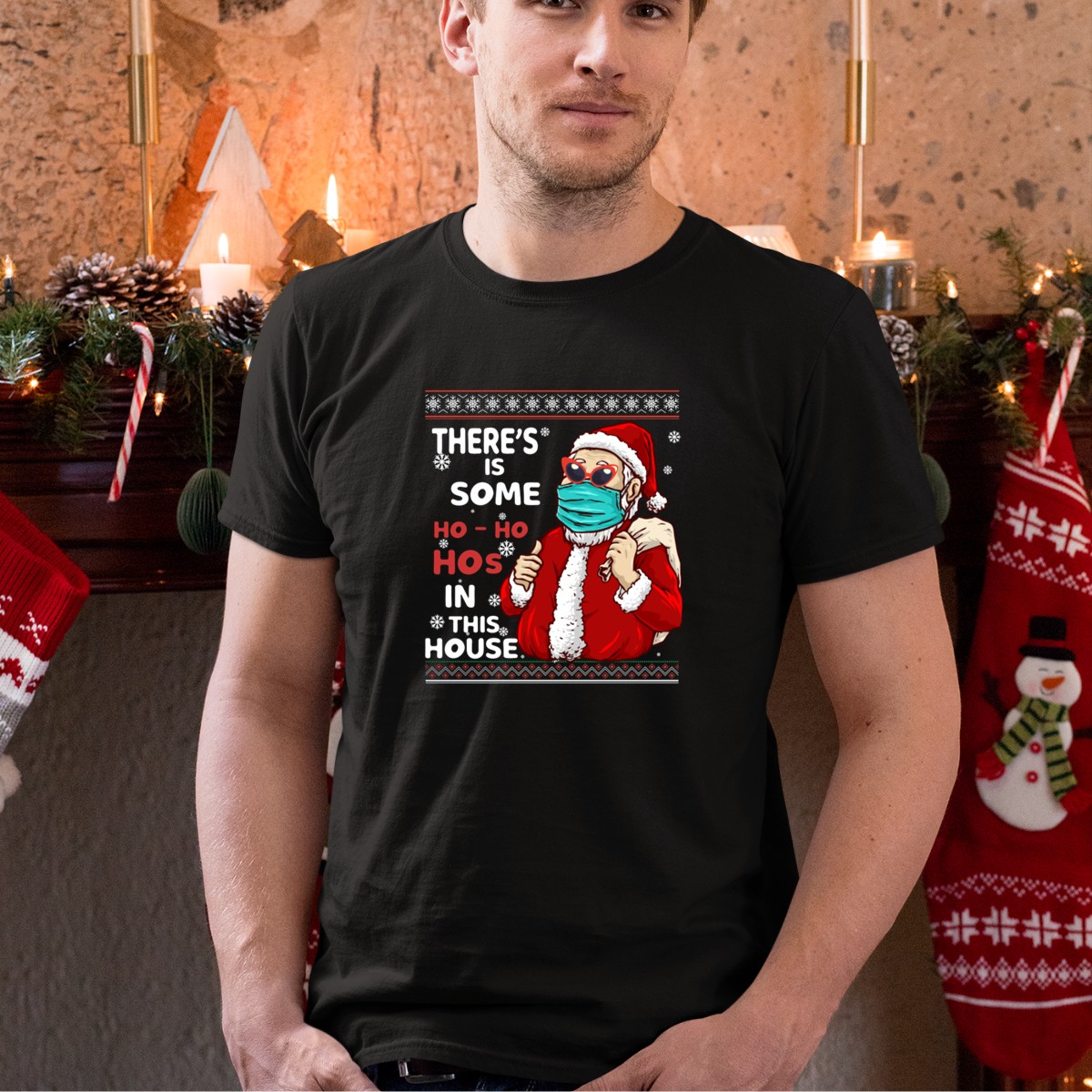 Be the first to review “Santa Claus Mask Sunglasses Snowflakes Christmas Humor Ho Ho Hos House T-Shirt”