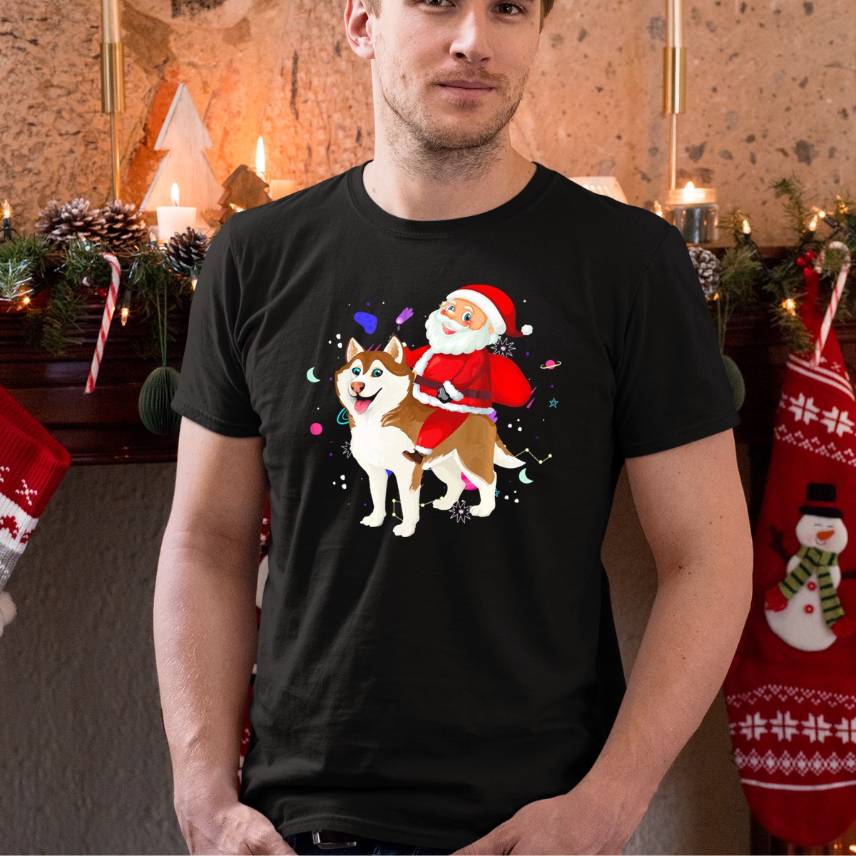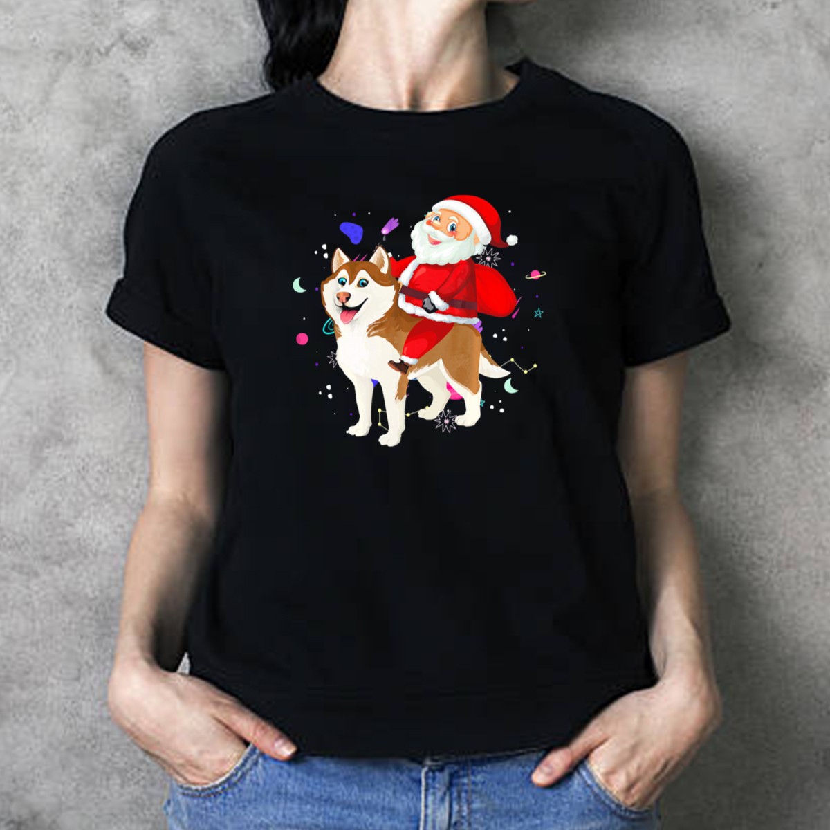 Get ready to spread holiday cheer with our Santa Claus Riding Husky In Outer Space T-Shirt! This whimsical design is perfect for festive gatherings, themed events, or just adding a touch of fun to your daily wear. Crafted for comfort and durability, this fan-made shirt is printed in the USA and is sure to be a conversation starter at any holiday celebration.
