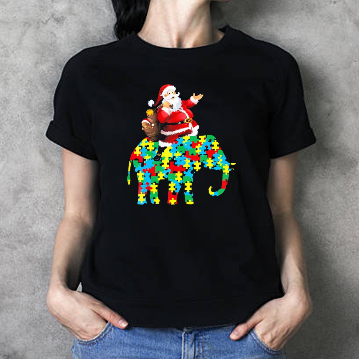Celebrate the spirit of the season with our Santa Claus Riding Puzzle Piece Elephant Christmas T-Shirt, designed especially for those who cherish the beauty of individuality and inclusion. This fan-made design is perfect for casual outings, themed events, or simply spreading holiday cheer. With its unique blend of festive imagery and meaningful symbolism, this shirt is a delightful way to showcase your support for autism awareness while staying comfortable and stylish.
