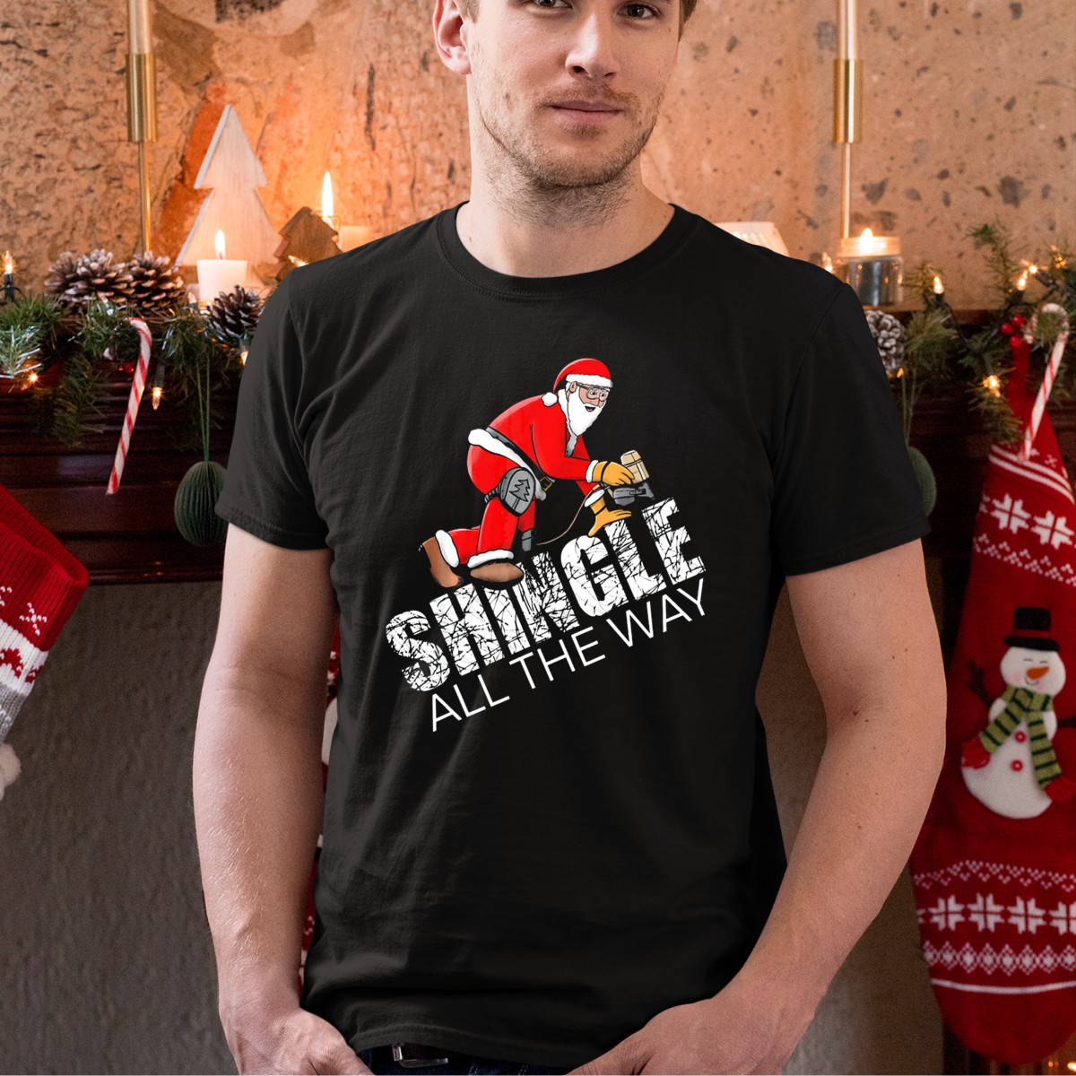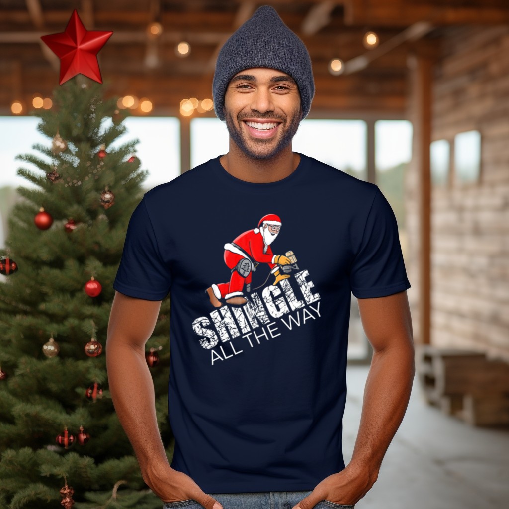 Bring holiday cheer to your wardrobe with the Santa Claus Roofing Christmas Shingle All The Way T-Shirt! This fun and festive tee is perfect for anyone who loves to celebrate the season with style and humor. Whether you’re attending a themed event, gathering with family, or just enjoying casual outings during the holidays, this shirt is sure to turn heads and spread smiles. Made for fans and printed right here in the USA, it combines quality and creativity for an unforgettable festive look.