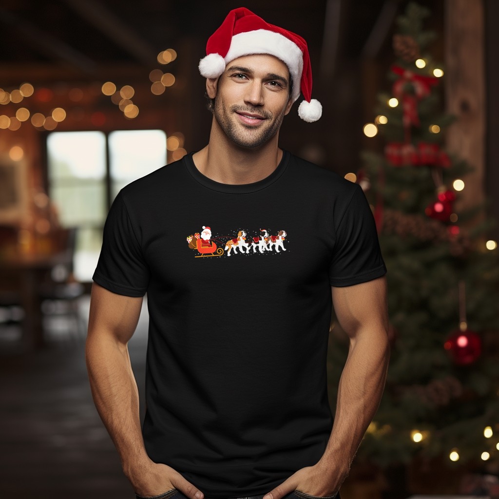 Celebrate the festive spirit with our Santa Claus St Bernard Dog Reindeer Sleigh Christmas T-Shirt! Perfect for dog lovers and holiday enthusiasts alike, this playful tee captures the joy of the season with a whimsical design featuring Santa and his trusty St Bernard. Ideal for casual wear, themed events, or simply spreading holiday cheer, this shirt is a must-have for anyone looking to add some fun to their Christmas wardrobe. Made with care in the USA, it’s not just a shirt; it’s a celebration!