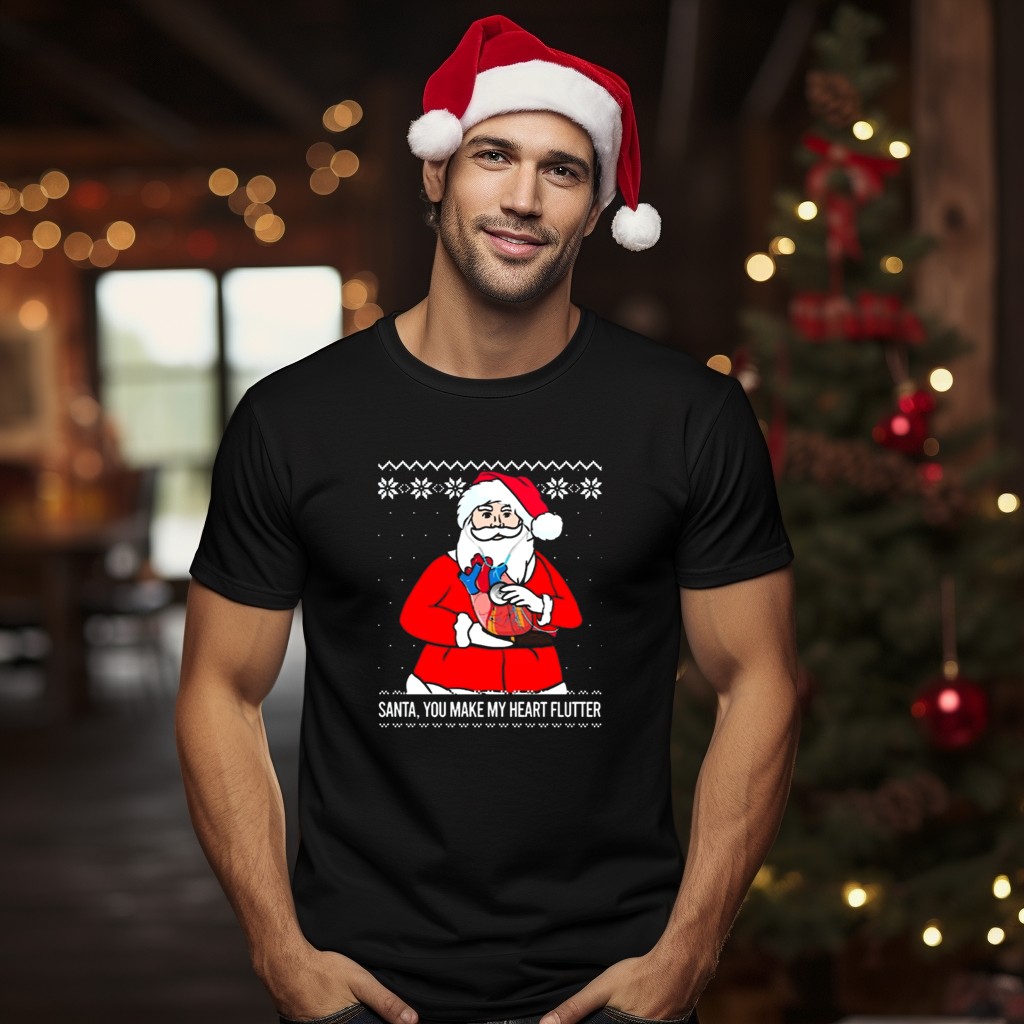 Celebrate the holiday spirit with our Santa Claus You Make My Heart Flutter Ugly Christmas Sweater 2025 Cardiologist T-Shirt! Perfect for medical professionals, this fun and festive tee is ideal for casual gatherings, themed events, or simply spreading cheer during the holiday season. Made for comfort and style, this shirt showcases a unique fan-made design that reflects your love for both Christmas and your profession, making it a delightful addition to your wardrobe.