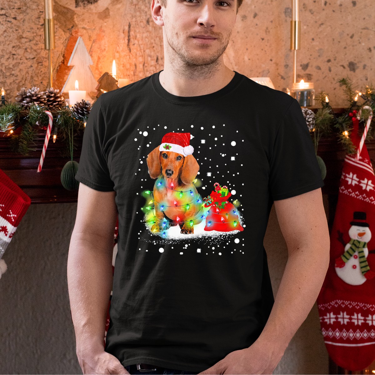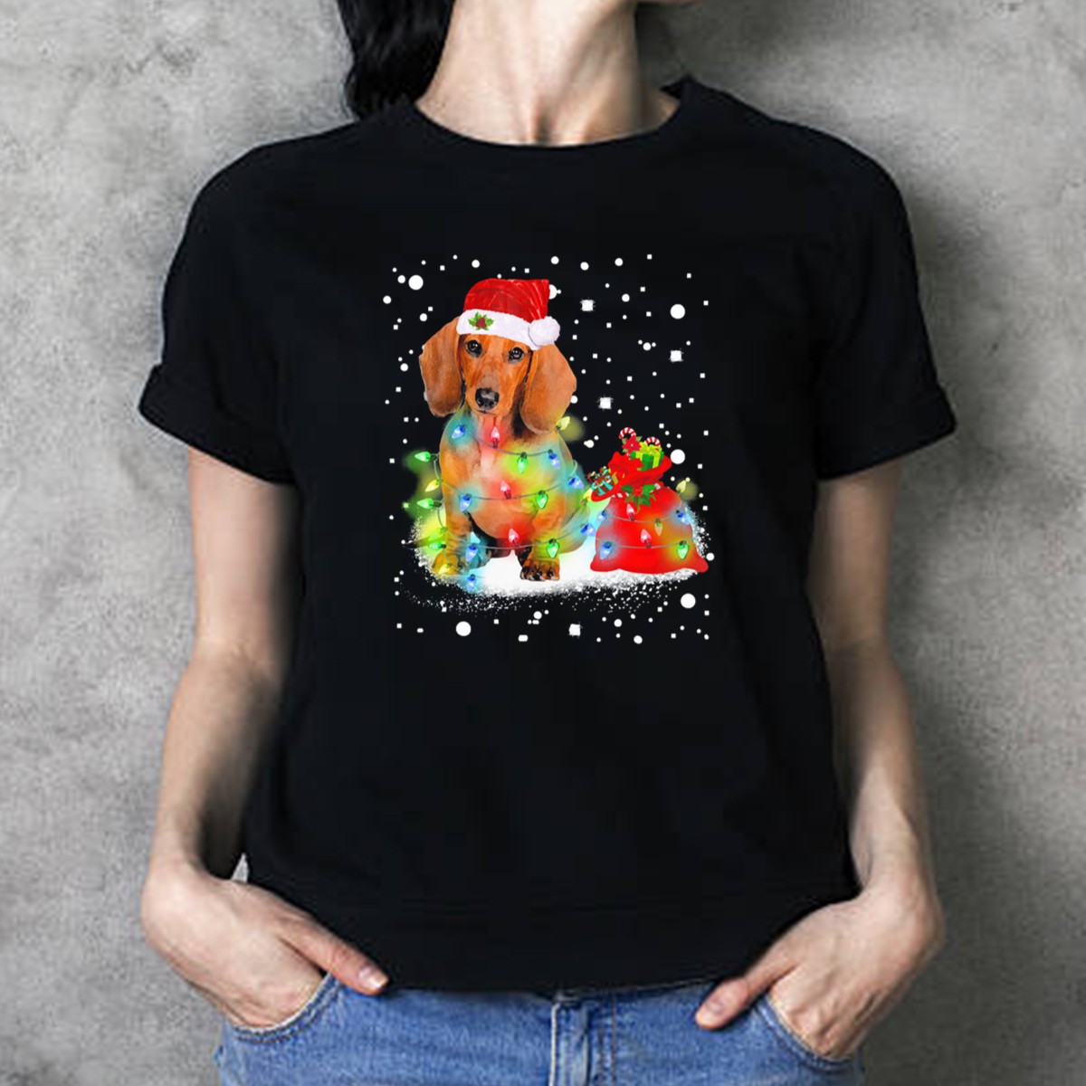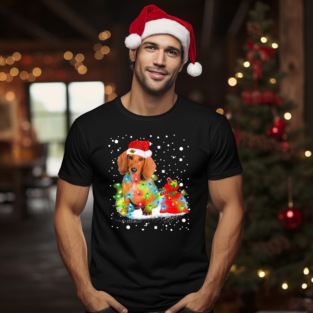 Celebrate the joy of the holiday season with our Santa Dachshund With Christmas Lights And Snowflakes T-Shirt! Perfect for dog lovers and festive spirits alike, this whimsical design showcases a charming dachshund adorned in Santa attire, surrounded by twinkling lights and delicate snowflakes. Whether you’re attending a holiday party, enjoying a cozy night in, or just spreading cheer around town, this shirt is your go-to choice for casual wear that brings smiles and warmth to every occasion.