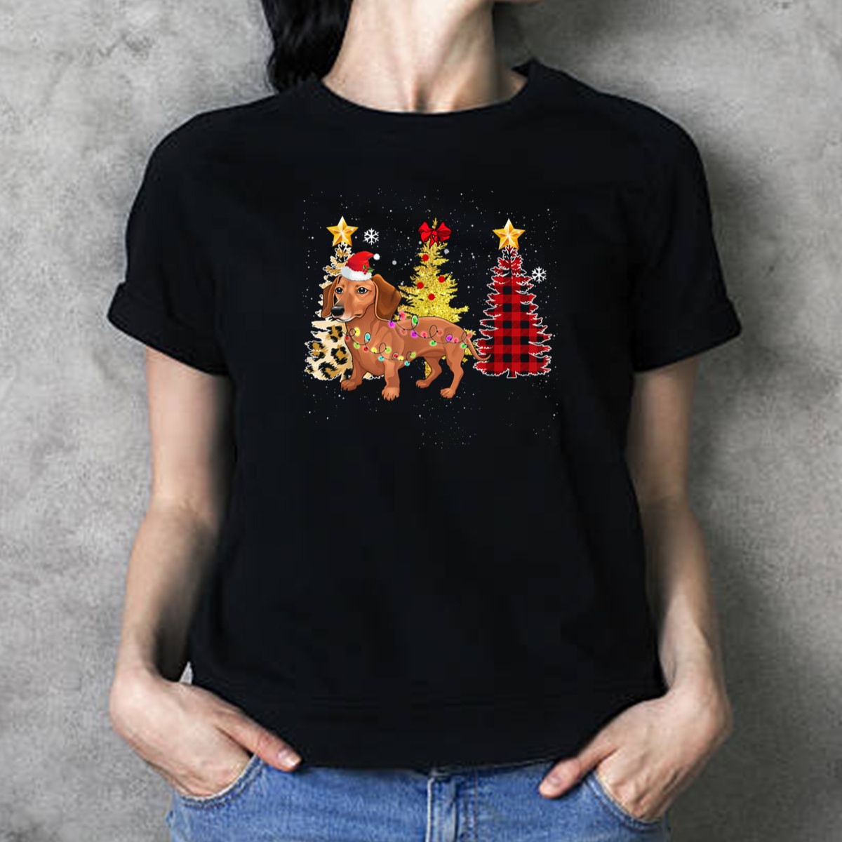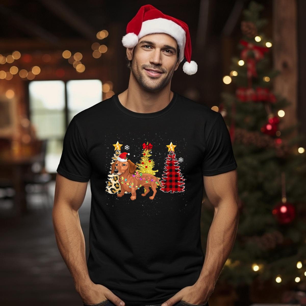Get into the festive spirit with our Santa Dachshund With Christmas Trees And Lights Holiday Scene T-Shirt! Perfect for dog lovers and holiday enthusiasts alike, this playful design is ideal for casual outings, themed events, or simply spreading cheer during the holiday season. Made with a fan-made design printed in the USA, this shirt combines comfort with a fun holiday vibe, making it a must-have for your winter wardrobe.