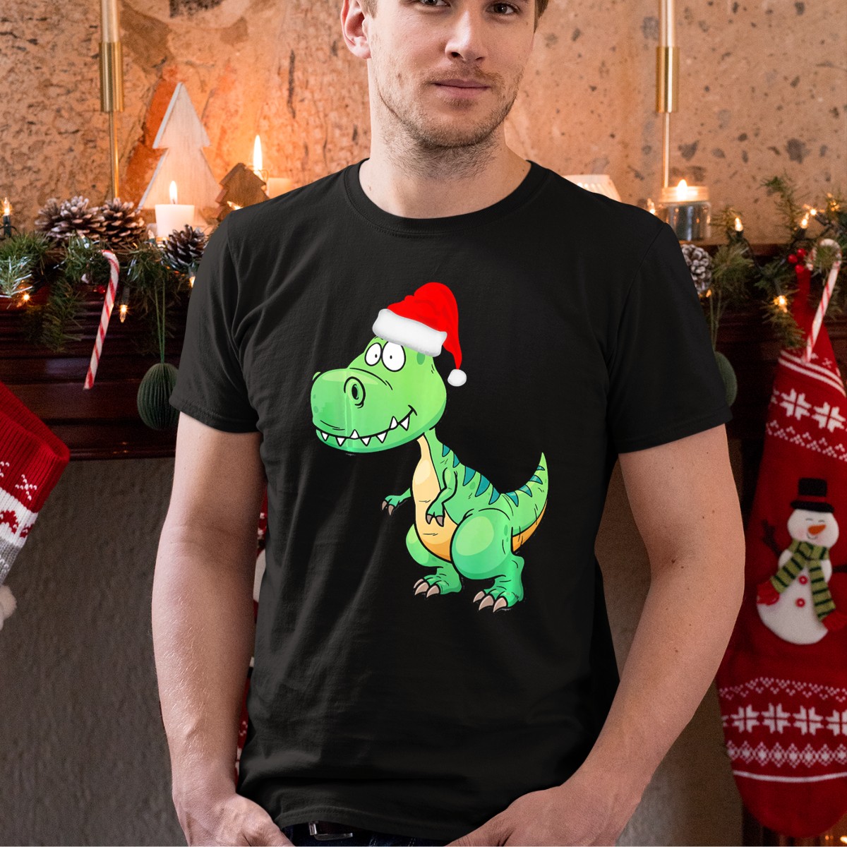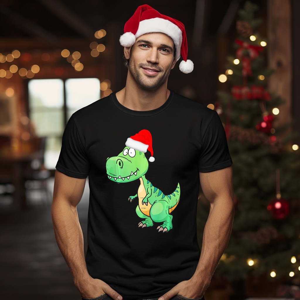 Get ready to spread some holiday cheer with our Santa Dinosaur Christmas T Rex T-Shirt! This whimsical design features a festive T Rex donning a classic Santa hat, making it the perfect choice for dinosaur lovers and holiday enthusiasts alike. Ideal for casual outings, themed events, or simply lounging around during the festive season, this shirt combines fun and comfort, ensuring you stand out while staying cozy. Plus, it’s proudly printed in the USA, so you can wear it with pride!