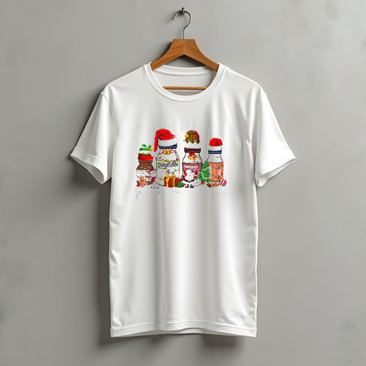 Celebrate the holiday season with a twist of humor in our Santa Diprivan Fentanyl Christmas Bottles T-Shirt! Perfect for those who appreciate a unique blend of festive cheer and edgy design, this shirt is ideal for casual gatherings, themed events, or just making a statement during the holidays. Made with a fan-made design printed in the USA, this shirt is a fun way to express your personality while staying comfortable and stylish.