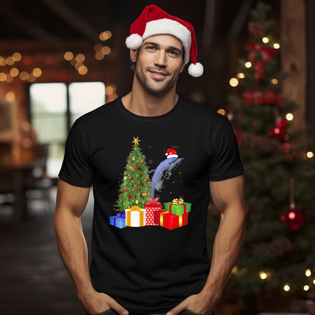 Celebrate the holiday season in style with our Santa Dolphin Christmas Tree T-Shirt! Perfect for ocean lovers and festive spirits alike, this fun and quirky design brings together the joy of Christmas and the charm of marine life. Whether you’re attending a themed party, enjoying a casual day out, or simply spreading Christmas cheer, this shirt is your go-to choice. Made with love in the USA, it’s a unique addition to your festive wardrobe that’s sure to turn heads and spark conversations!