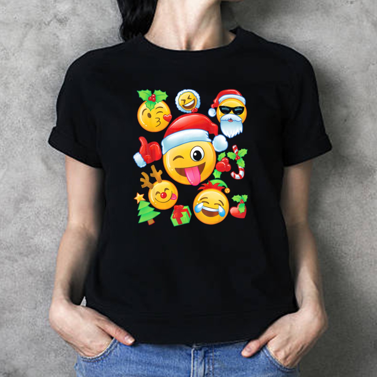 Be the first to review “Santa Emoji Christmas Fun With Reindeer Candy Cane Gifts And Holly T-Shirt”