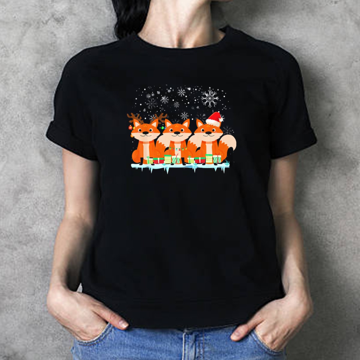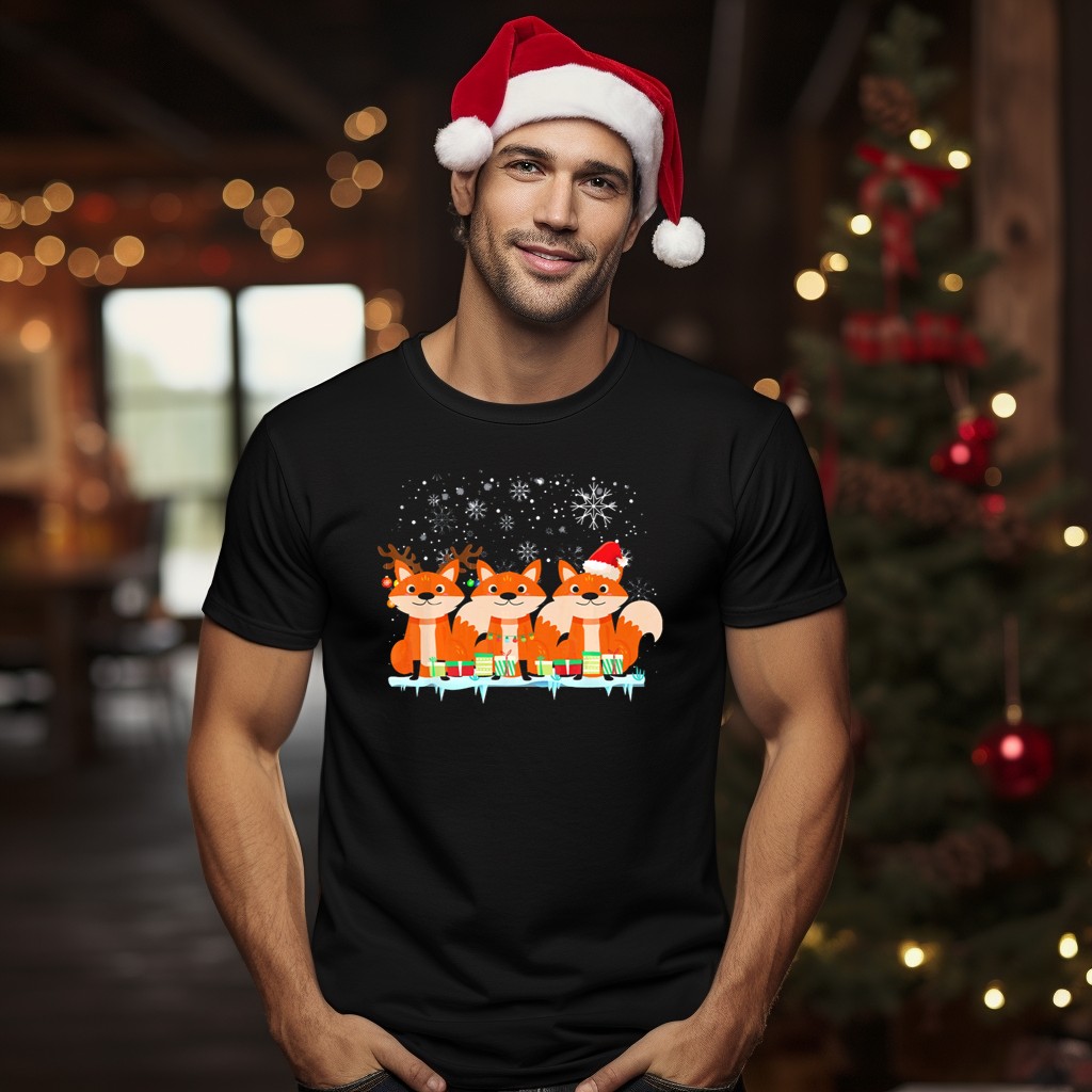 Be the first to review “Santa Fox Christmas Lights Reindeer Fox Snowflakes T-Shirt”