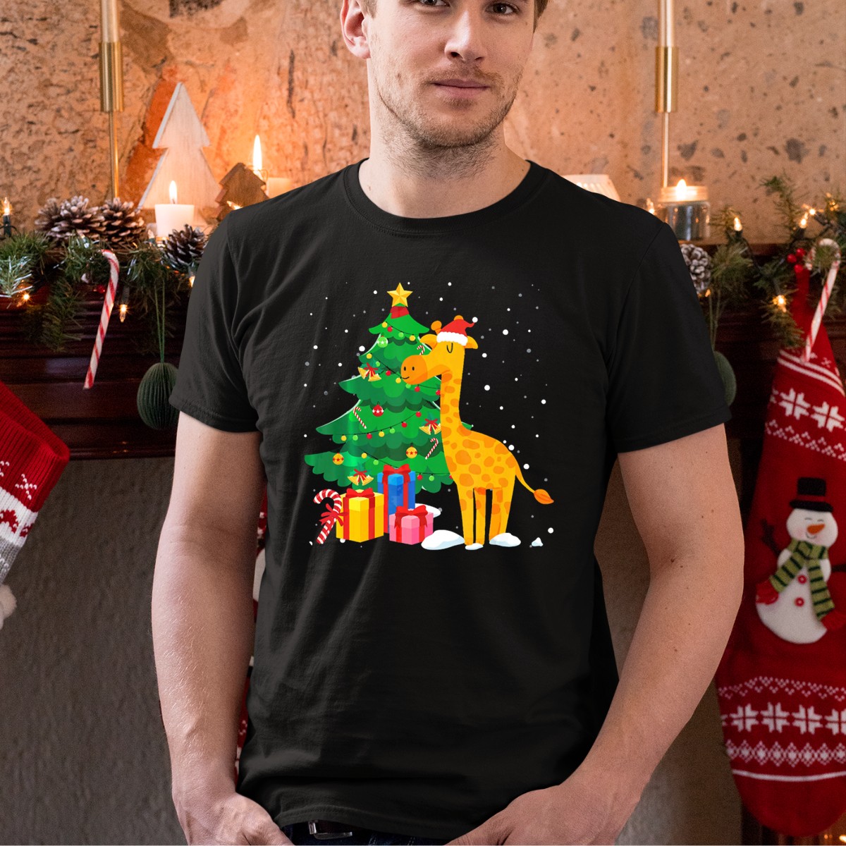 Be the first to review “Santa Giraffe Christmas Tree Gifts Snowflakes T-Shirt”