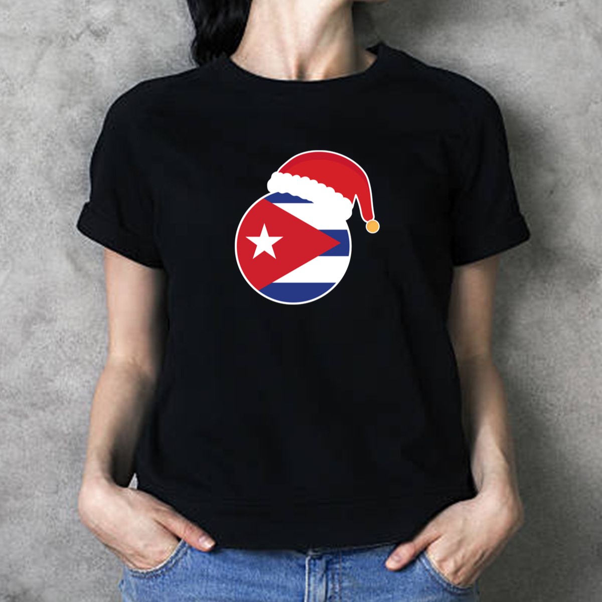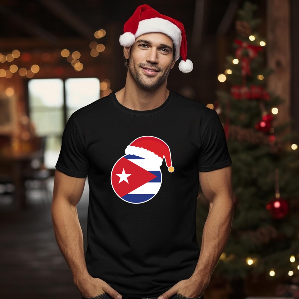 Celebrate the holiday season with our Santa Hat Adorned Cuban Flag Circle Christmas T-Shirt! This unique fan-made design is perfect for those who want to showcase their love for Cuba while embracing the festive spirit. Ideal for casual wear, themed events, or daily outings, this shirt combines comfort and style, making it a must-have for all-season fun. Spread joy and holiday cheer with a touch of cultural pride!