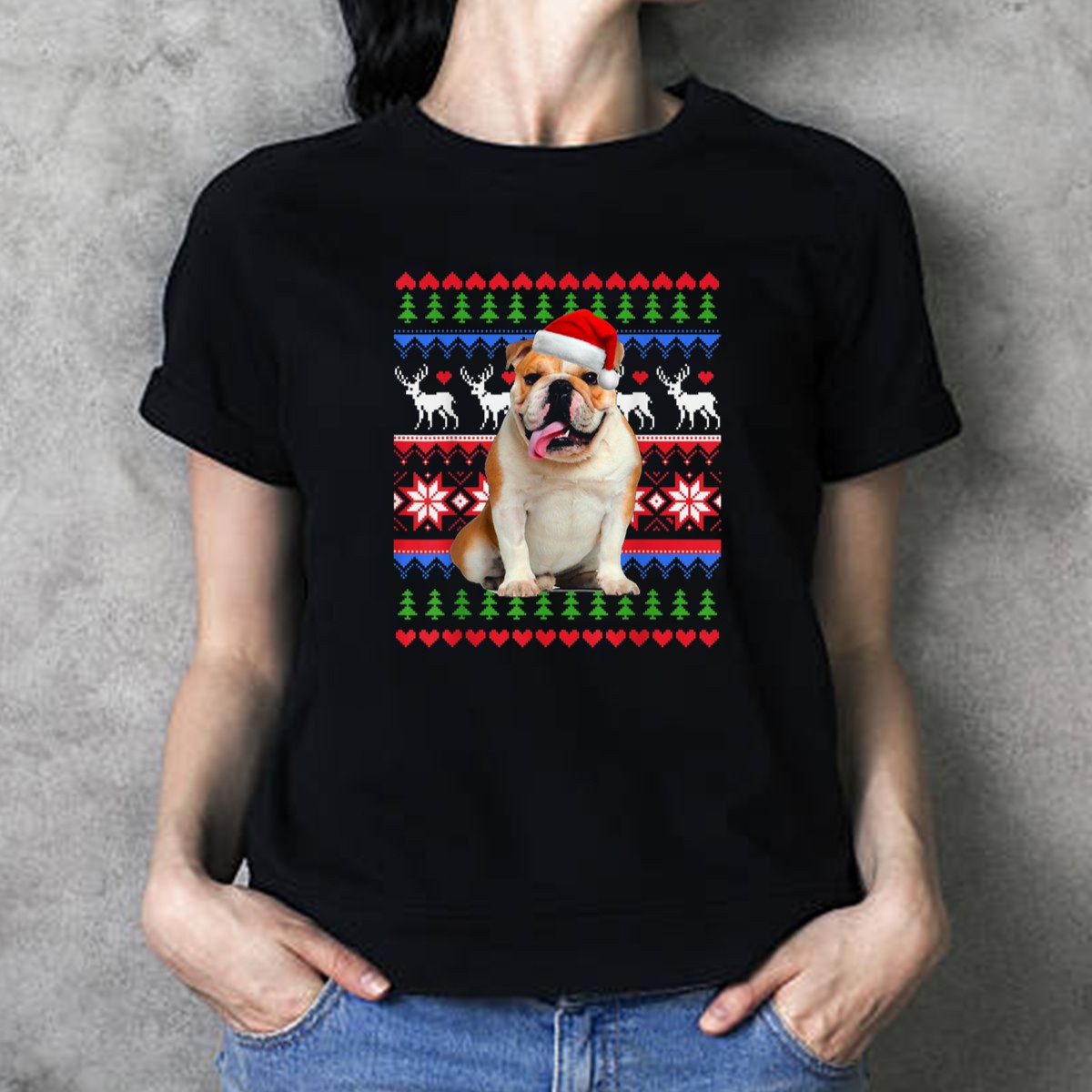 Get ready to spread the holiday cheer with our Santa Hat English Bulldog Ugly Christmas T-Shirt! This fun and festive tee is perfect for dog lovers and anyone looking to make a statement at parties, family gatherings, or casual outings during the holiday season. With its unique fan-made design printed right here in the USA, this shirt combines comfort and style, making it a must-have for your winter wardrobe.