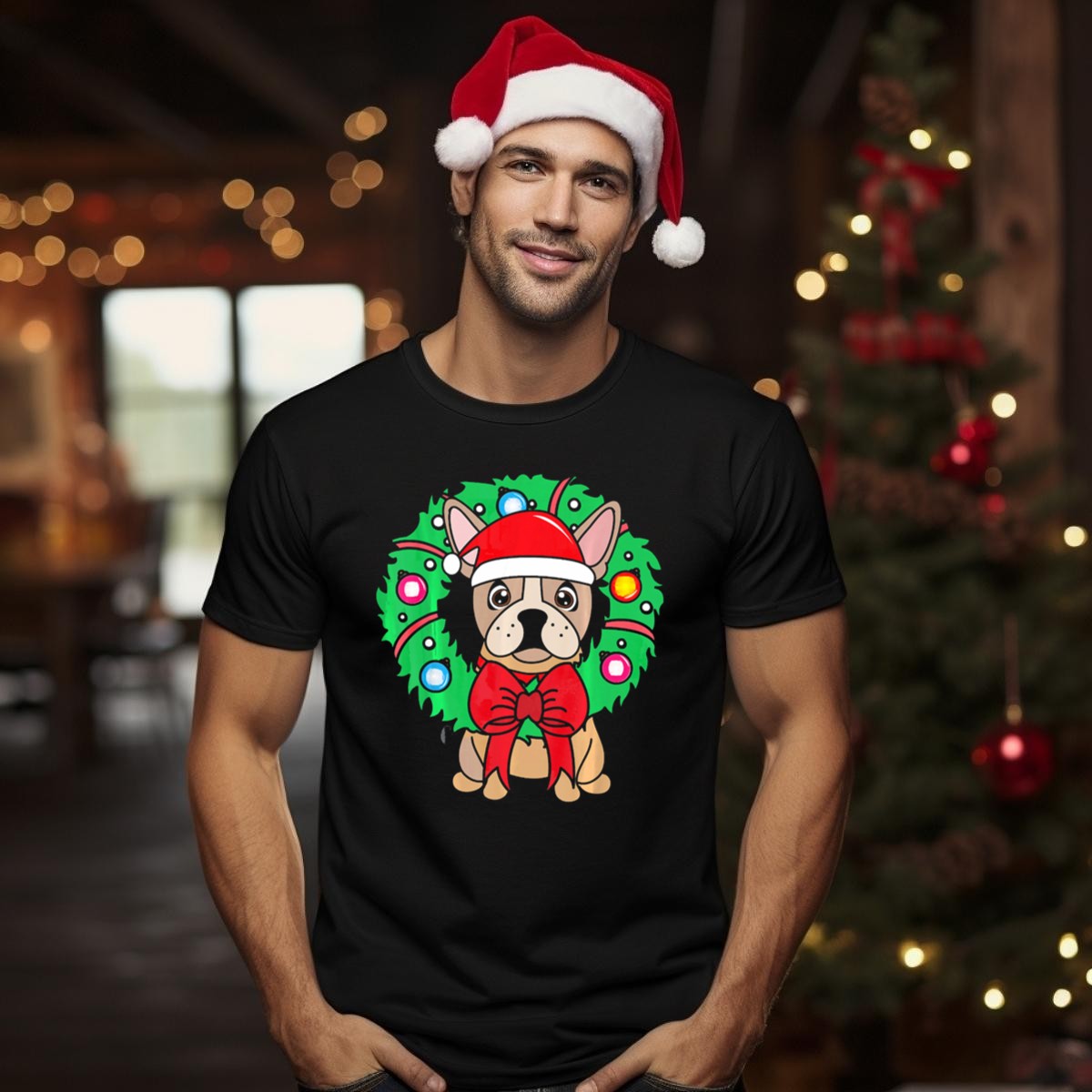 Celebrate the holiday season in style with our Santa Hat French Bulldog Christmas Wreath T-Shirt! This festive tee is perfect for dog lovers and anyone who wants to add a touch of whimsy to their casual wear. Ideal for holiday gatherings, themed events, or just lounging around during the festivities, this shirt features a charming design that showcases your love for French Bulldogs and Christmas cheer. Made in the USA, it’s not just a shirt; it’s a statement of your unique holiday spirit!