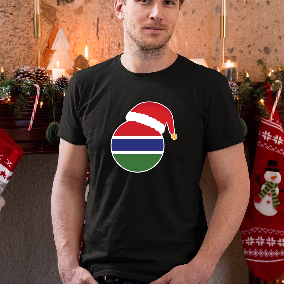 Celebrate the festive season with our Santa Hat On The Gambia Flag Themed Christmas T-Shirt! Perfect for holiday gatherings, themed events, or just spreading cheer during your daily wear, this shirt is designed for those who love to showcase their pride while embracing the joy of Christmas. Made with a fan-made design printed in the USA, it combines comfort with a unique festive flair that makes it a must-have for your wardrobe.