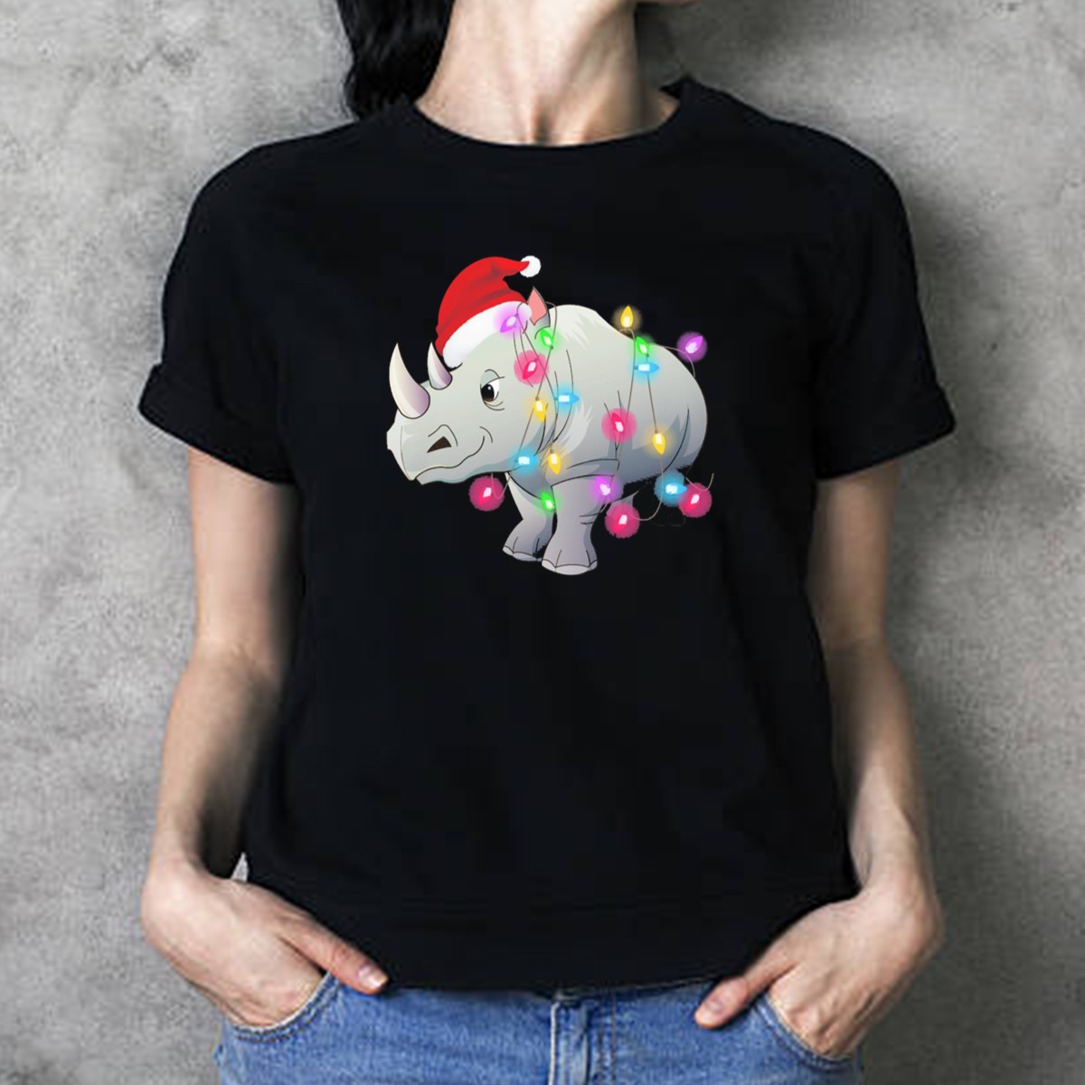 Celebrate the festive season with our Santa Hat Rhino Wrapped In Colorful Christmas Lights T-Shirt! Perfect for animal lovers and holiday enthusiasts alike, this fun and eye-catching design adds a whimsical touch to your casual wear. Whether you’re attending a themed event, gathering with family, or just enjoying the holiday spirit, this unique shirt is sure to spread joy and laughter wherever you go.