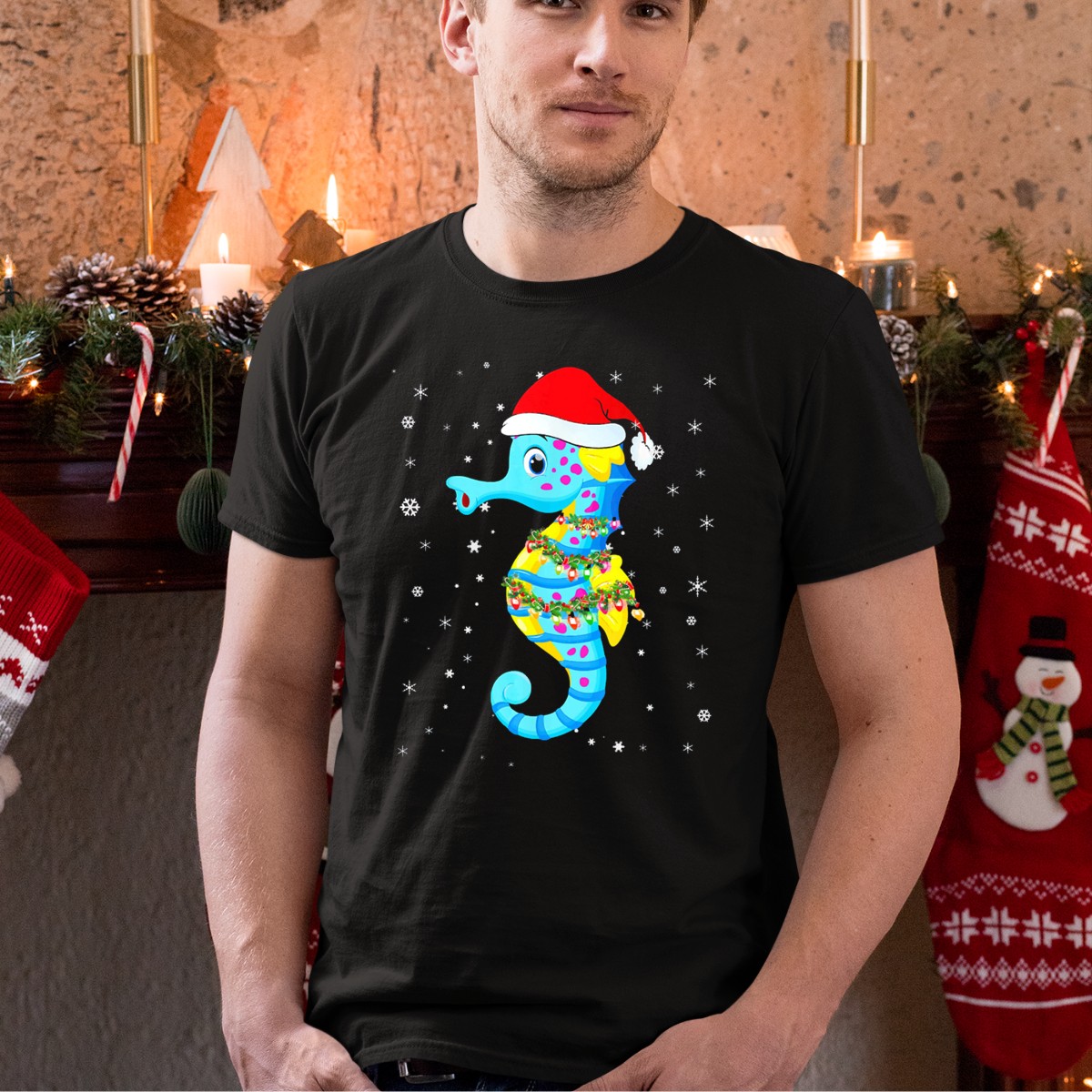 Be the first to review “Santa Hat Seahorse With Christmas Lights And Snowflakes T-Shirt”
