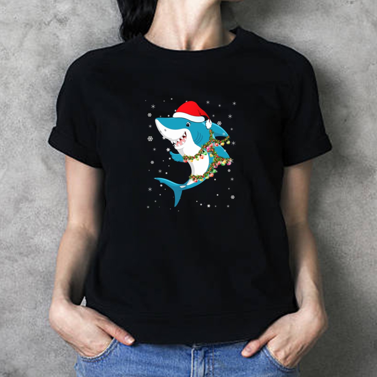 Get ready to make a splash this holiday season with our Santa Hat Shark T-Shirt! Perfect for ocean lovers and festive spirits alike, this fun and playful design features a shark wearing a Santa hat adorned with twinkling Christmas lights and cheerful snowflakes. Ideal for casual outings, themed parties, or just spreading holiday cheer, this shirt is a unique addition to any festive wardrobe, bringing joy and laughter wherever you go.