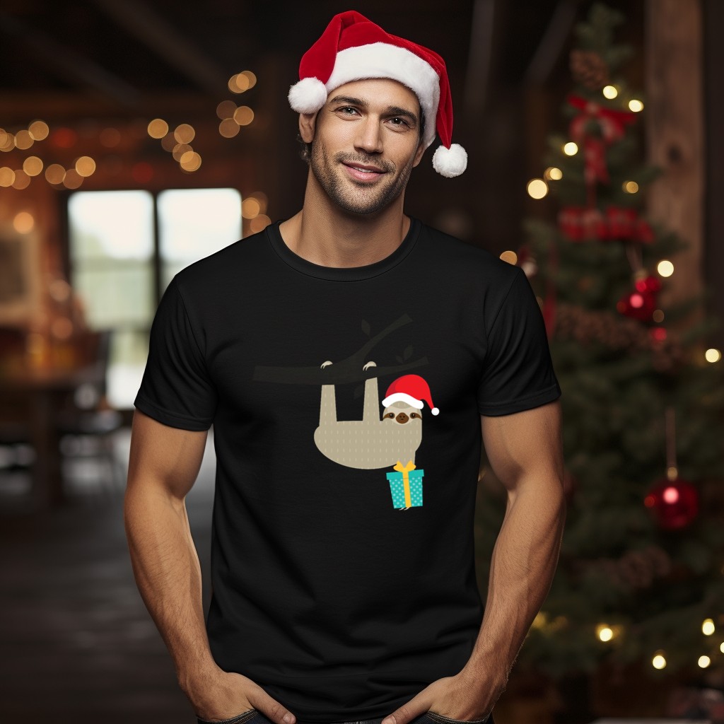 Embrace the holiday spirit with our Santa Hat Sloth With Gift Hanging T-Shirt, perfect for animal lovers and festive enthusiasts alike! This fun and whimsical design captures the playful essence of a sloth celebrating Christmas, making it an ideal choice for casual wear, themed events, or simply spreading cheer during the holiday season. Crafted for comfort and style, this shirt is sure to turn heads and spark smiles wherever you go.