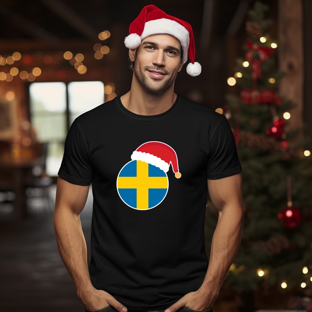 Celebrate the holiday season with our Santa Hat Sweden Flag Christmas T-Shirt, a perfect blend of festive cheer and national pride! This fan-made design is ideal for anyone looking to showcase their love for Sweden while enjoying casual gatherings, themed events, or just daily wear during the holidays. Printed in the USA, this shirt promises comfort and style as you spread joy this Christmas!