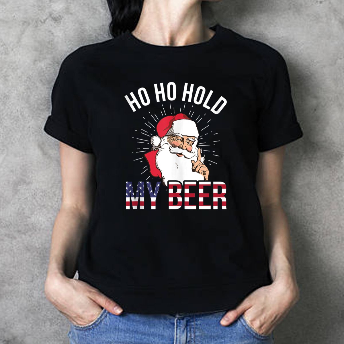 Get ready to spread some holiday cheer with our Santa Ho Ho Hold My Beer American Flag Christmas In July T-Shirt! This fun and festive tee is perfect for anyone who loves to celebrate the spirit of Christmas even in the summer. Ideal for casual wear, themed events, or just lounging around, this shirt combines a playful design with comfort. Made in the USA, it showcases a fan-made graphic that truly stands out, making it a unique addition to your wardrobe.