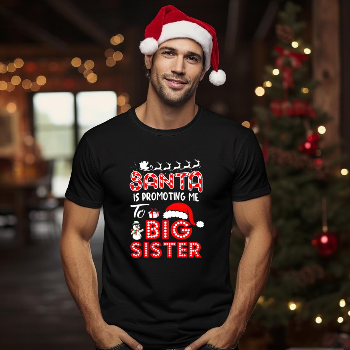 Celebrate the joy of family and the magic of the holiday season with our “Santa Is Promoting Me To Big Sister” T-shirt! Perfect for little ones who are excited to take on their new role, this whimsical design features playful graphics of Santa, reindeer, and snowmen, making it an ideal choice for Christmas gatherings, themed events, or simply spreading festive cheer every day. Crafted for comfort and style, this fan-made design is printed in the USA, ensuring that your child stands out in festive flair.