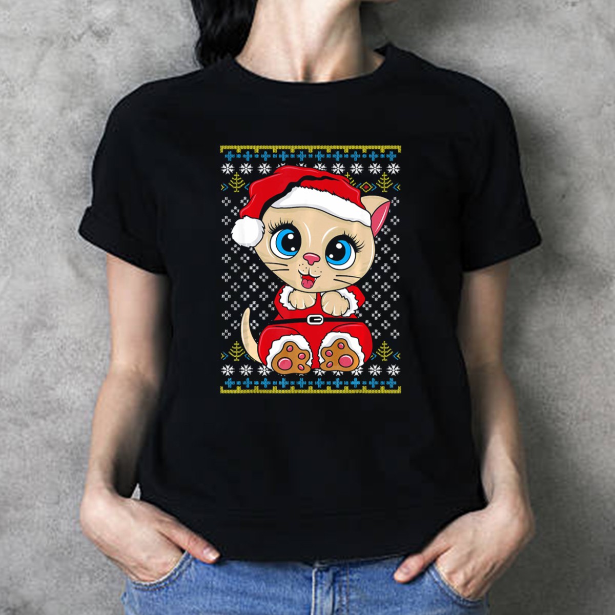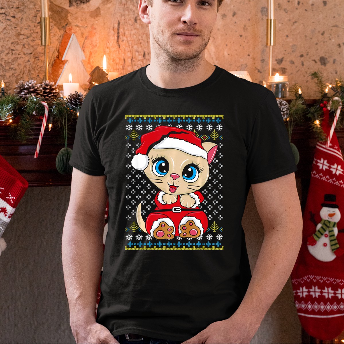 Be the first to review “Santa Kitten Ugly Christmas Sweater Style Cartoon Cat T-Shirt”