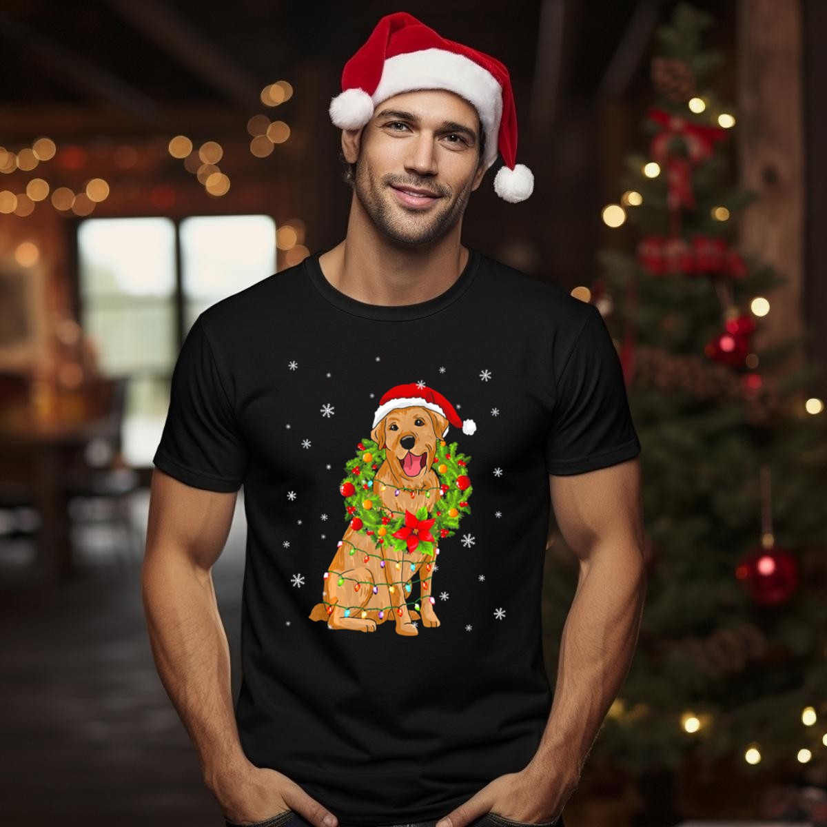 Celebrate the holiday season with our charming Santa Labrador Retriever Wrapped In Christmas Lights And Wreath T-Shirt! Perfect for dog lovers and festive enthusiasts alike, this fun design adds a playful touch to your casual wear. Ideal for themed events, holiday gatherings, or simply spreading cheer in your daily life, this shirt showcases a heartwarming tribute to the beloved Labrador Retriever, making it a unique addition to your winter wardrobe.