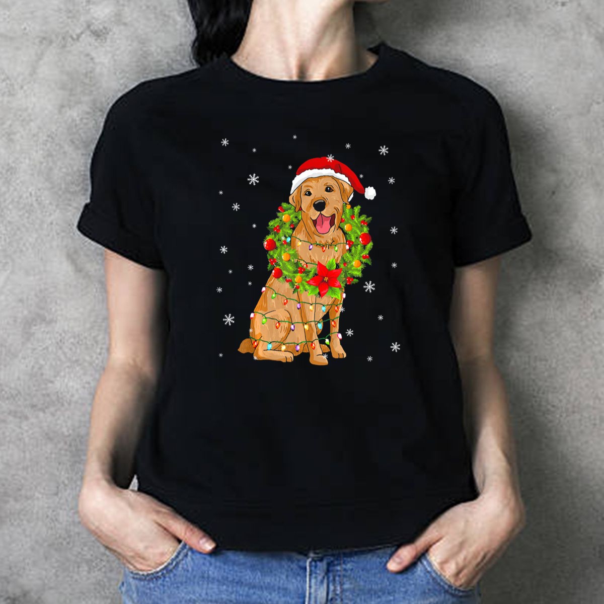 Be the first to review “Santa Labrador Retriever Wrapped In Christmas Lights And Wreath T Shirt”